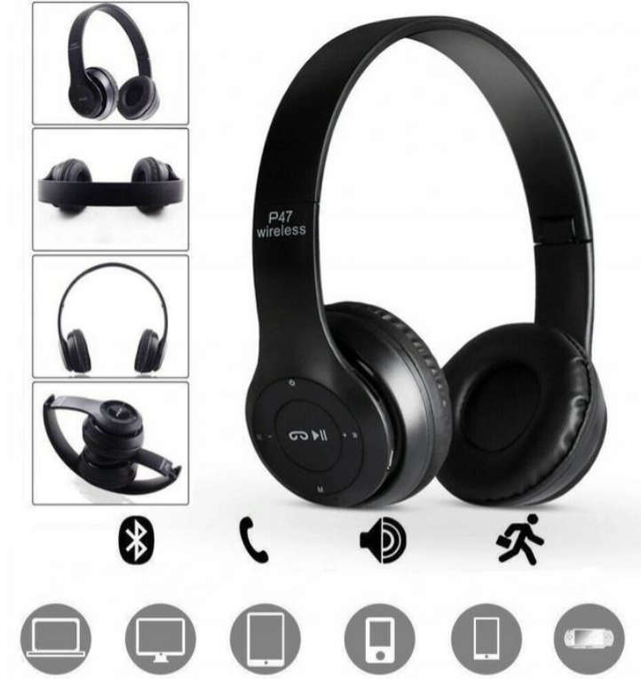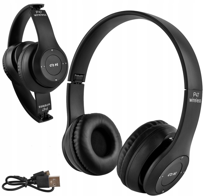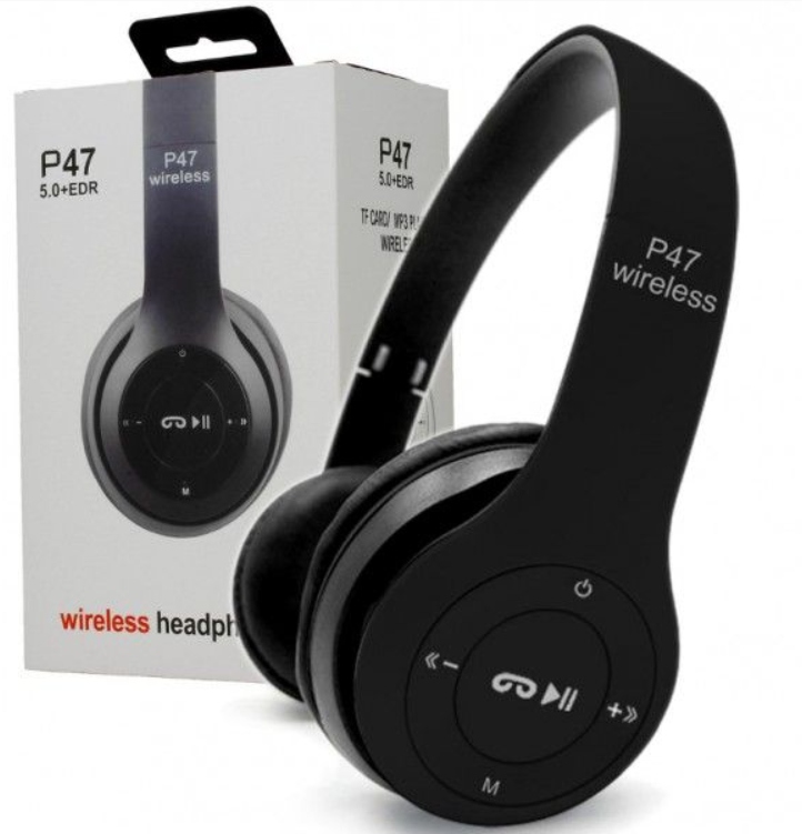 БЕСПРОВОДНЫЕ НАУШНИКИ BLUETOOTH P47 MP3 МИКРОФОН, ЧЕРНЫЕ
