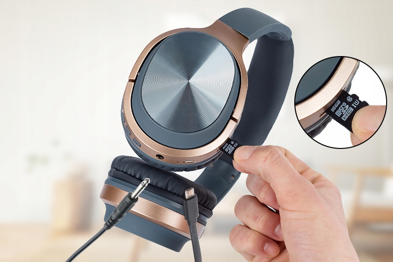 Телефон разряжен? Наушники оснащены устройством чтения карт памяти microSD, поэтому вы можете загружать в наушники любимые песни и использовать их как с