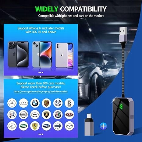 Универсальная совместимость: беспроводной ключ CarPlay совместим с более чем 600 моделями автомобилей. Совместим с: Ford Chevrolet Toyota Subaru Jeep Honda Nissan Cadillac RAM Mercedes Peugeot Lincoln Volkswagen Volvo Mazda Porsche Benz и т. д. *Чтобы использовать этот адаптер, на заводе в вашем автомобиле должен быть подключен CarPlay.