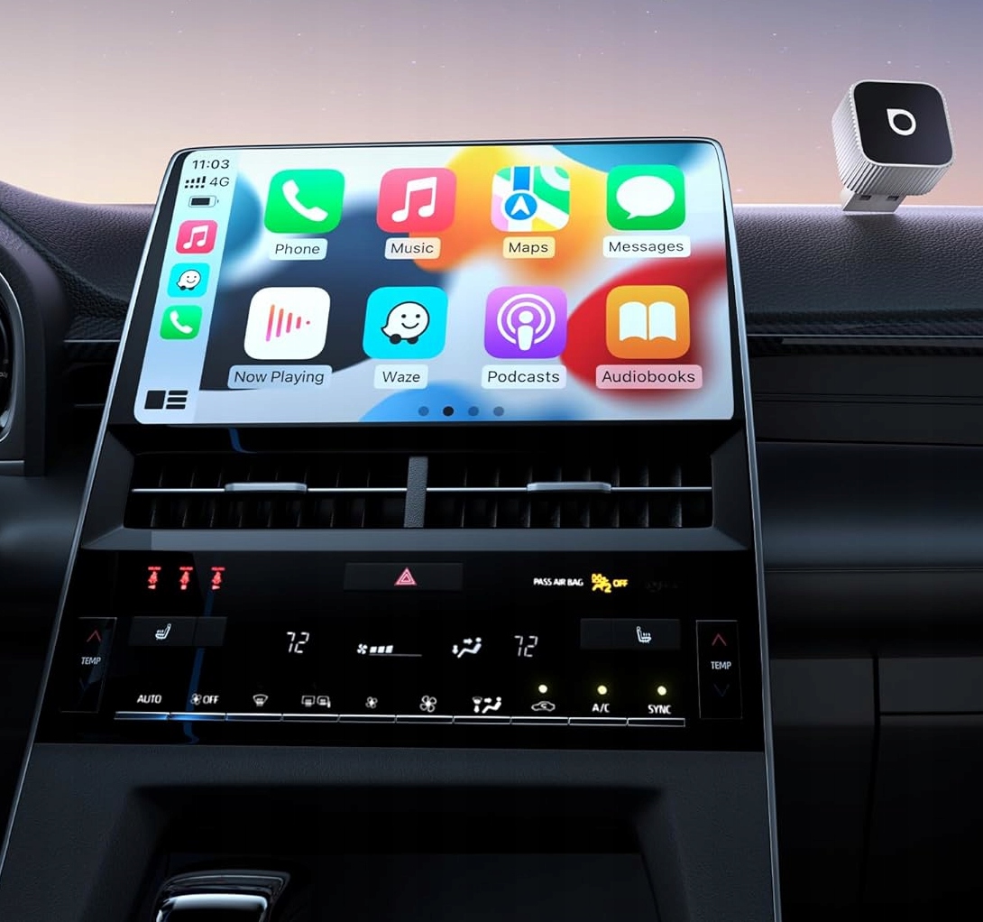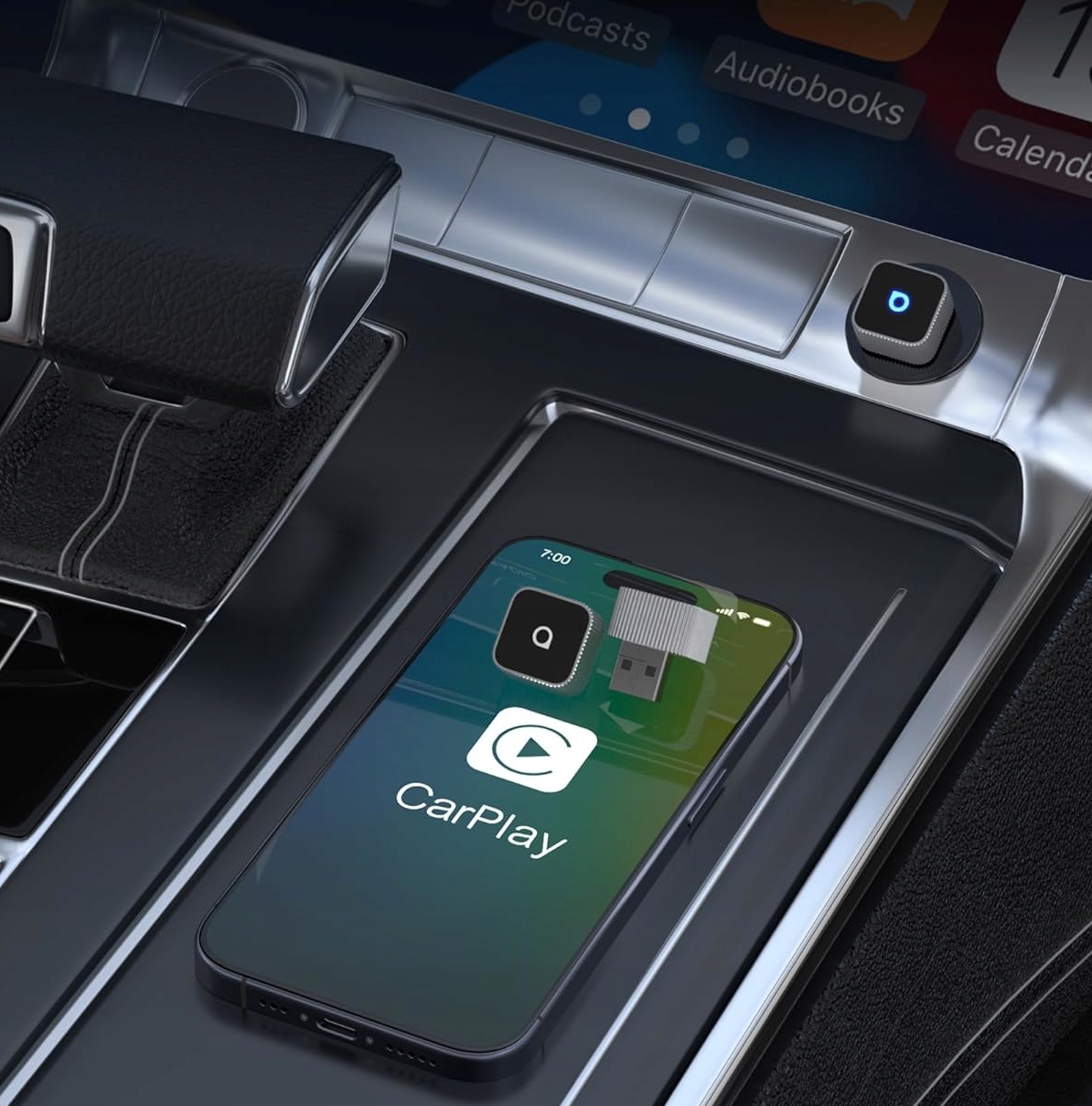 Ottocast Mini Cube совместим с автомобилями, оснащенными заводской проводной системой Apple CarPlay или Android Auto.