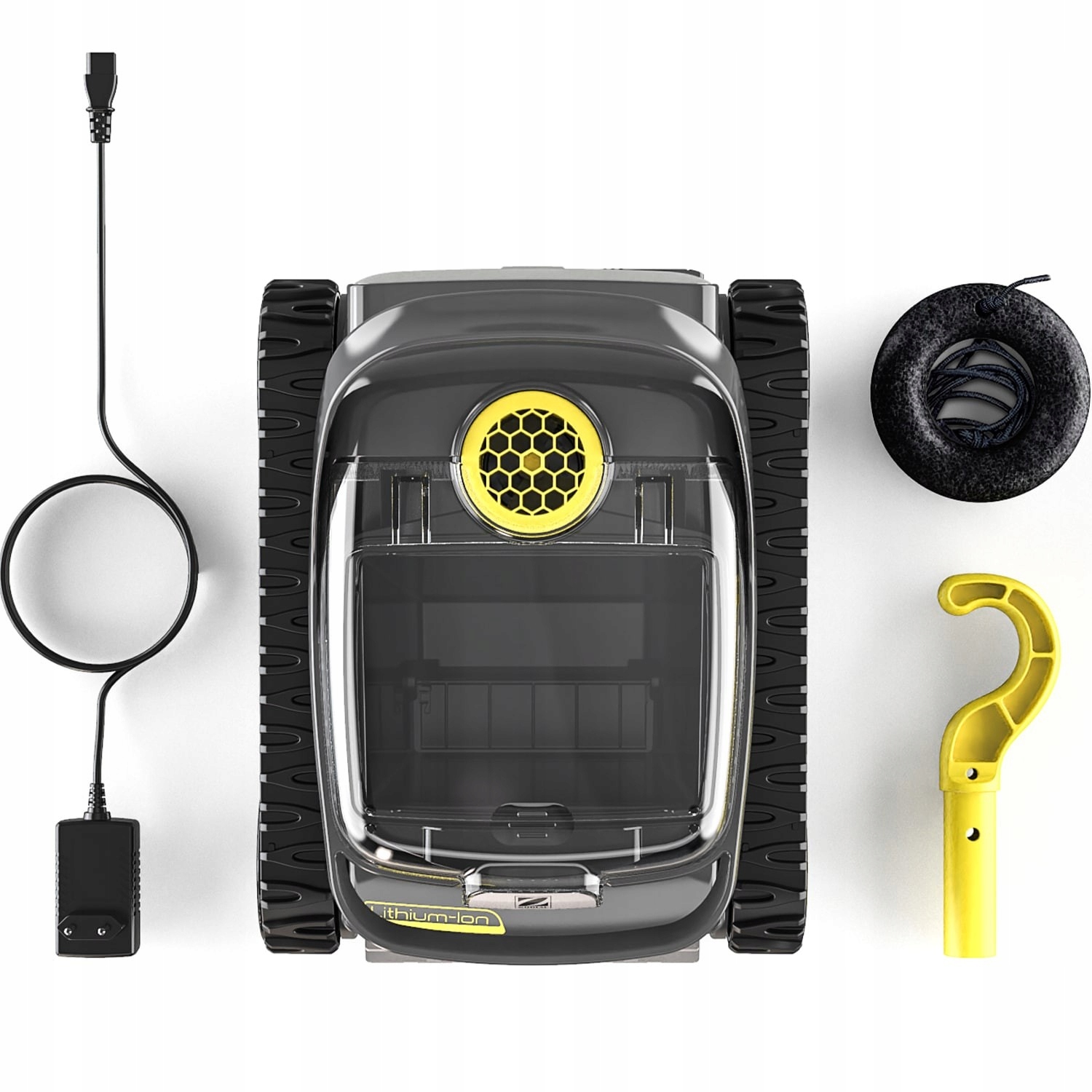 Беспроводной вакуумный очиститель оснащен литий-ионной батареей. Устройство не требует подключения к системе фильтров. Он ездит автоматически, собирая грязь с нижней части бассейна в съемном фильтре.