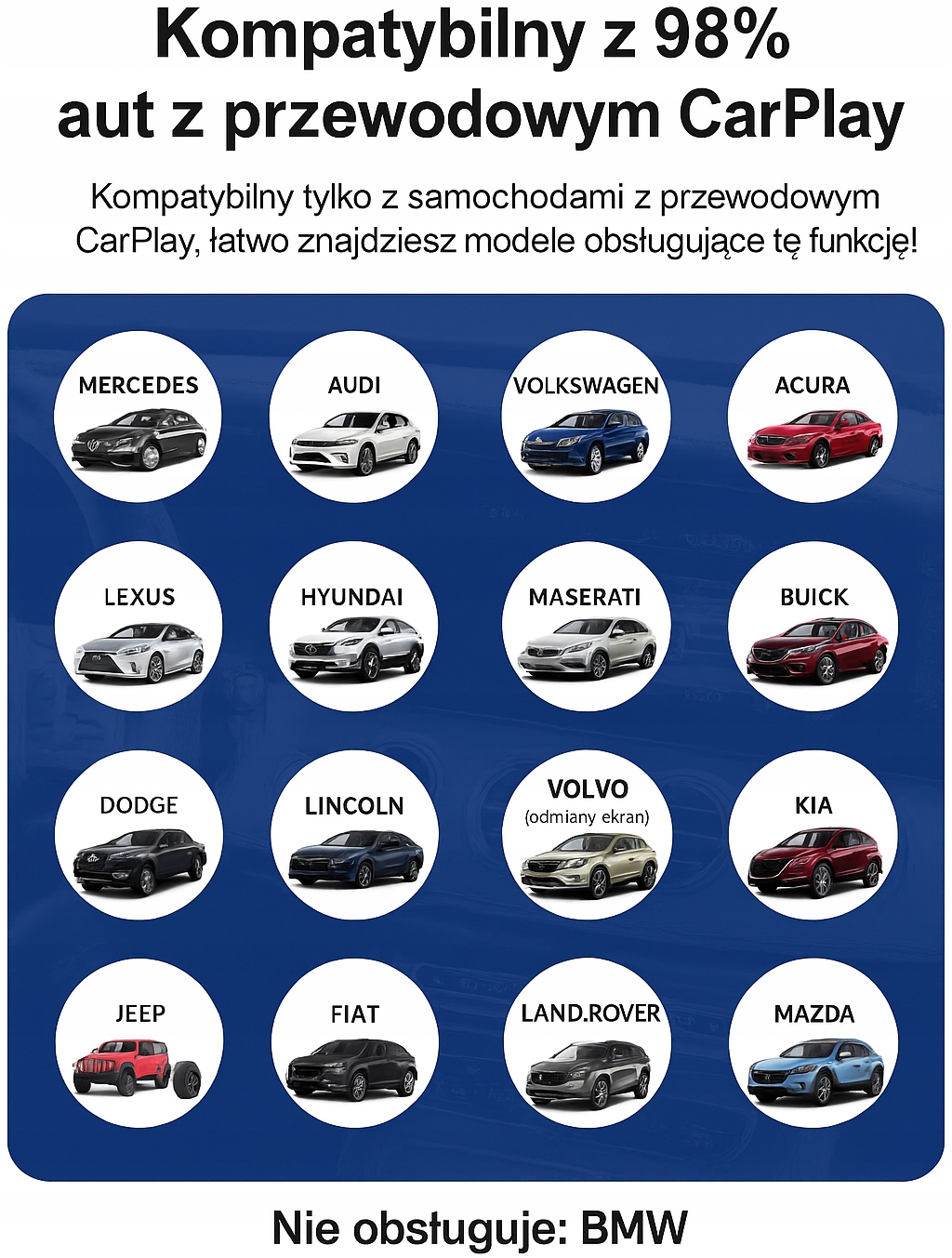 ✅ Устройство работает только с автомобилями с заводской функцией CarPlay.