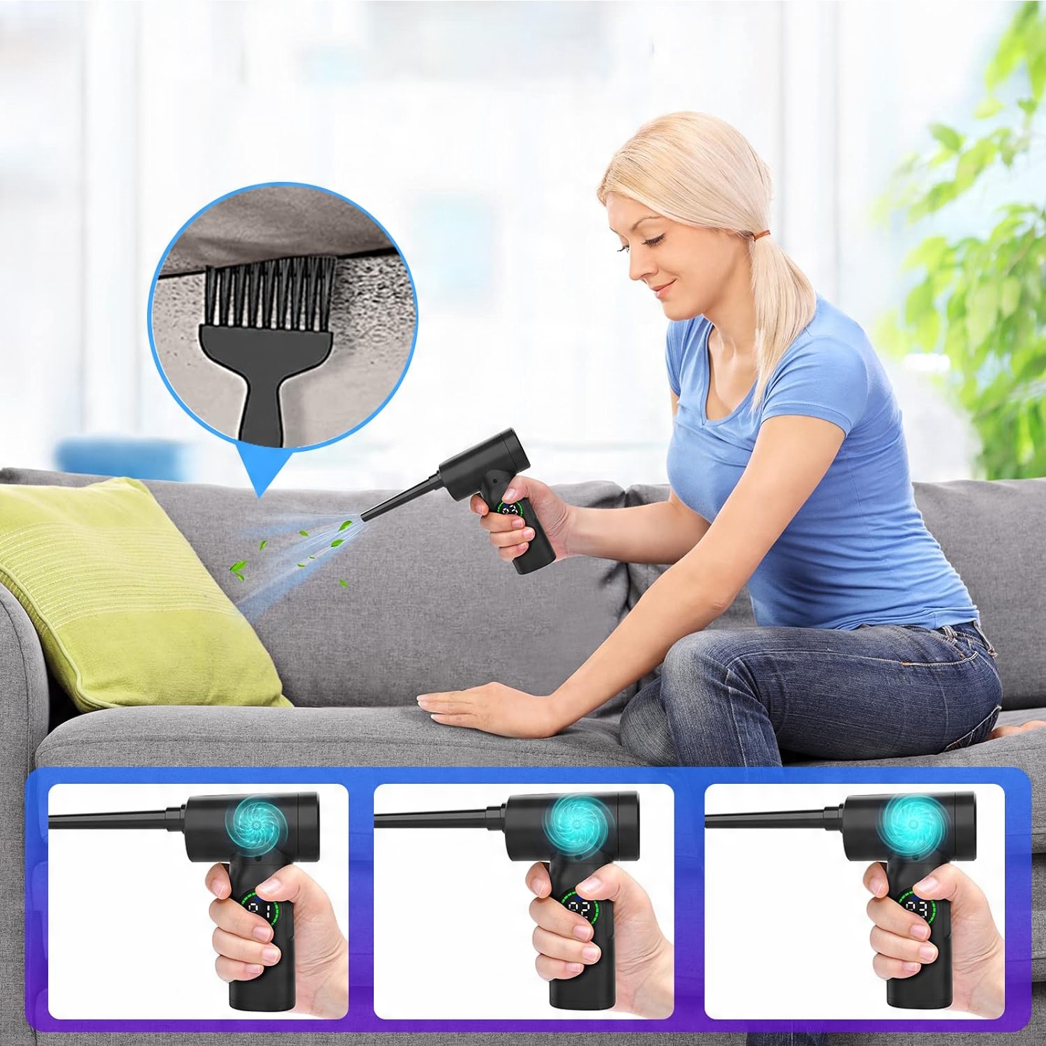 🔻Благодаря технологии мощного двигателя электрический воздушный пылесборник имеет максимальную скорость 110 000 об/мин, что позволяет очистить каждый угол. Всего доступно 3 скорости ветра.