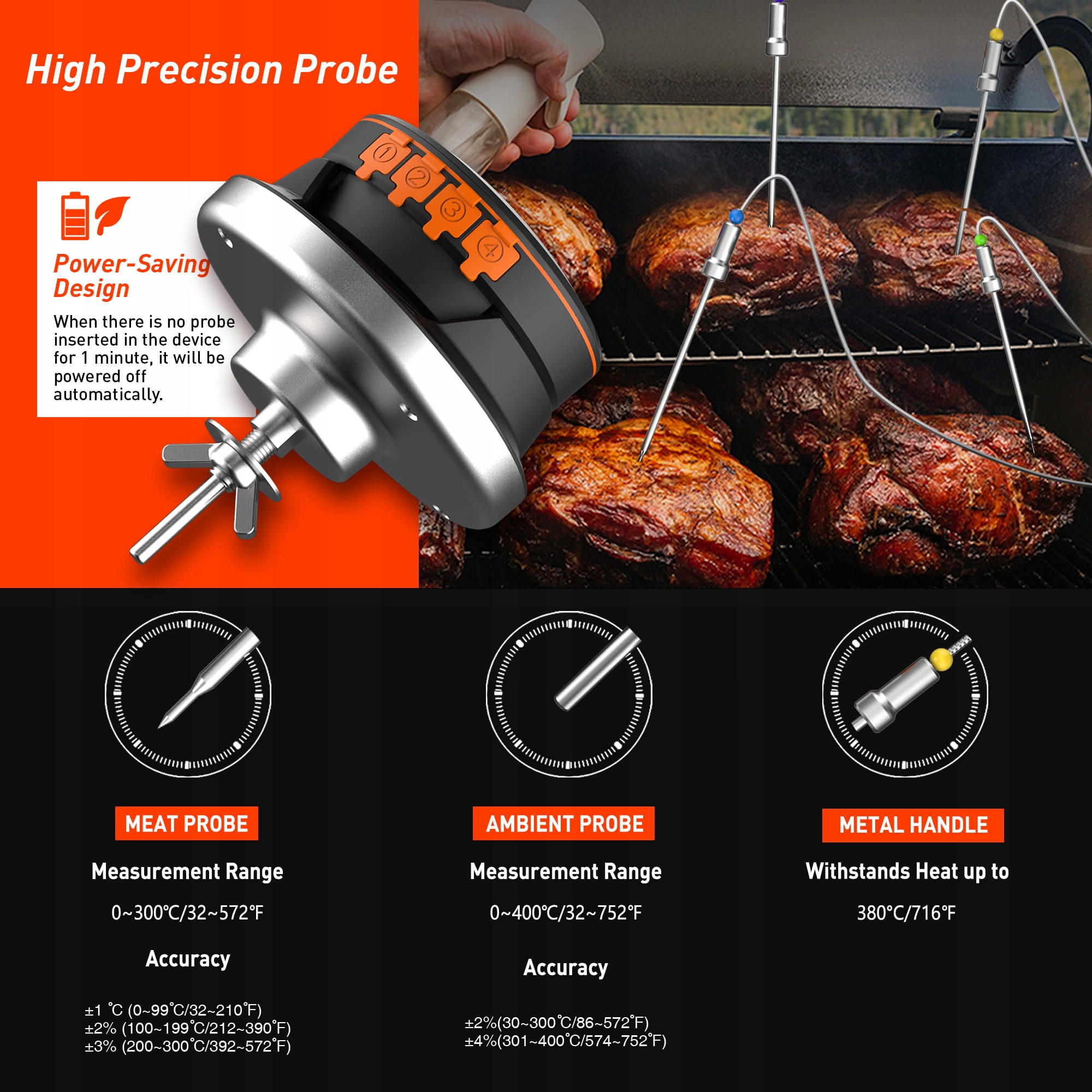 Бездротовий Bluetooth-термометр для гриля-коптильні з 4 зондами - Aidmax AT02