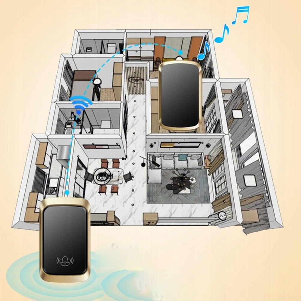 Максимальный диапазон операции беспроводного колокола составляет до 150 м, благодаря которой пользователь легко сможет установить его как дома, в помещении, так и в квартире или даже в гараже. Колокол очень прост в установке.