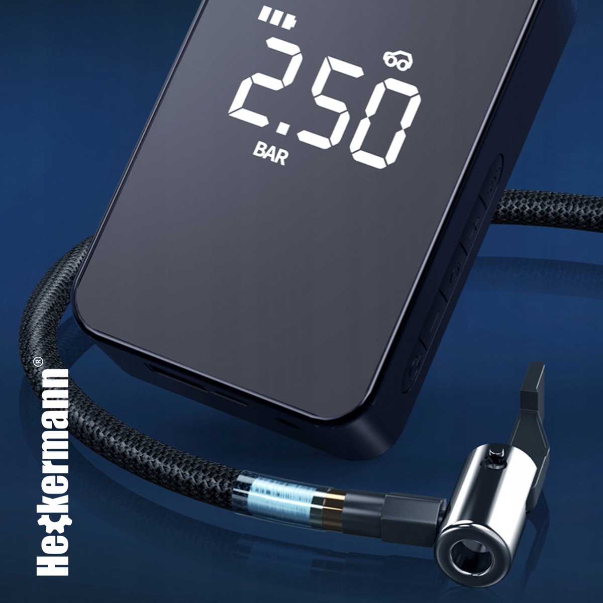 - Насос электромобиля имеет специальный датчик, с помощью которого можно точно установить подходящее давление в шинах.