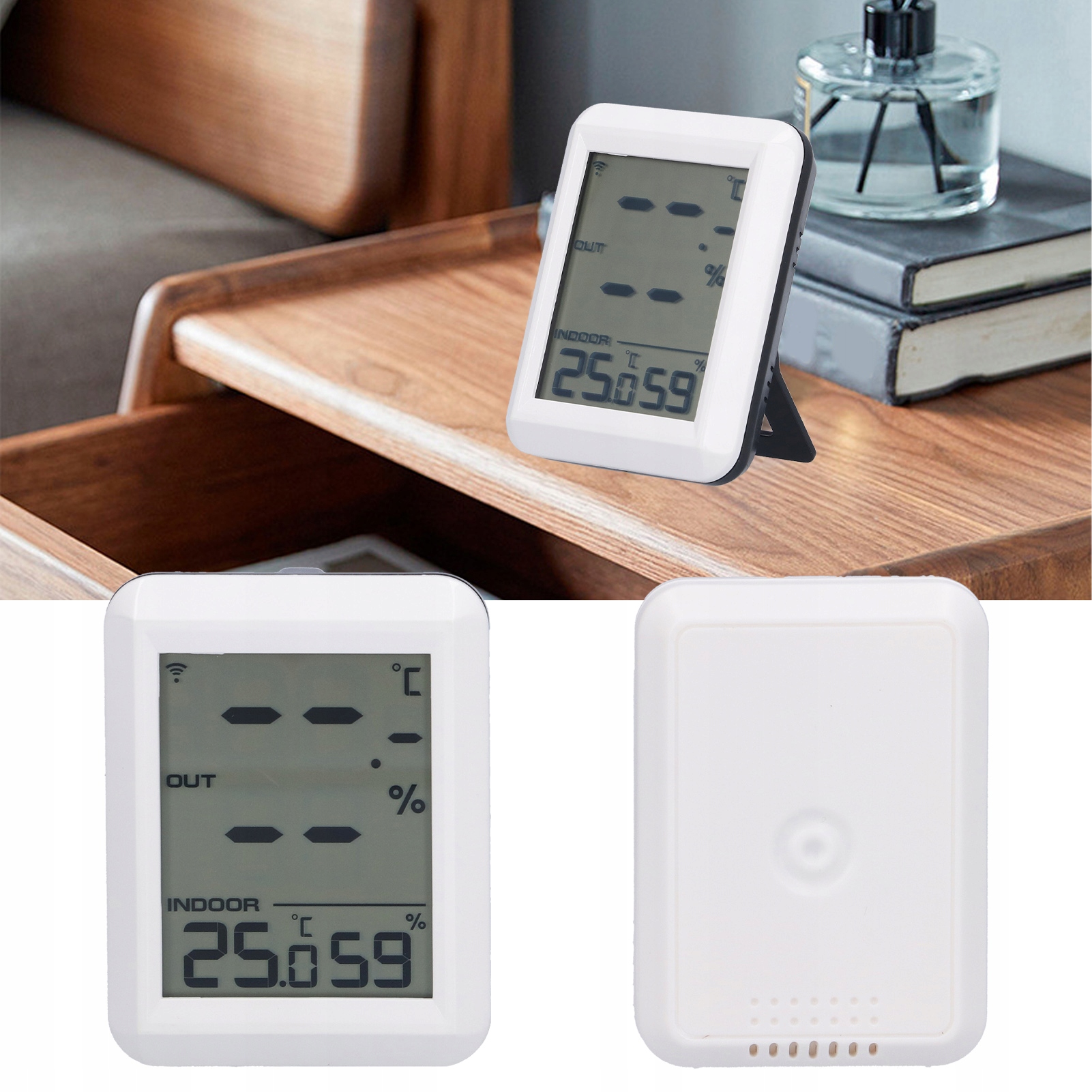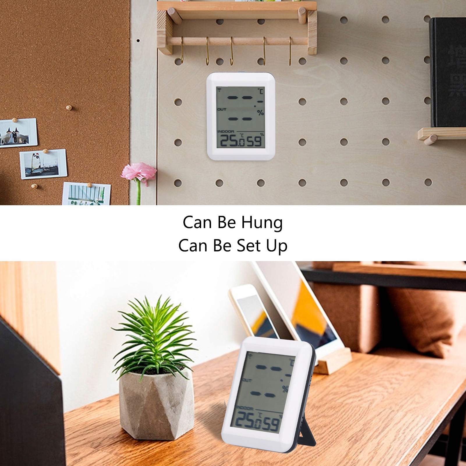 1. Цифровой монитор: измерение реальной температуры и влажности в режиме реального времени. Удобно получить температуру и влажность внутри и снаружи. Беспроводной передатчик: этот гигрометр оснащен беспроводным беспроводным передатчиком (частота 433 МГц), а расстояние открытой передачи составляет 100 метров, эффективное расстояние передачи составляет 30 метров. Широкий диапазон измерения: внутренний диапазон температуры составляет 0-60 ℃/32-140 ℉, внешний диапазон температуры составляет -40 ℃ -60 ℃/-40 ℉ -140 ℉; Диапазон влаги составляет 10–99%. Данные автоматически обновляются каждые 60 секунд, что позволяет стабилизации датчика в течение около 30 минут. Удобная регулировка: легко переключите температурный блок на ℃ или ℉, используя кнопку вверху. Следует помнить, что перед установкой батареи в устройство переключите блок/℉ ℉, значение по умолчанию равно ℃. Питается с 2 батареями AAA. Гибкое применение: разработан с возможностью повесить на стену и выдвижной кронштейн сзади, его можно легко установить на стене или на столе. Широко используется в детских комнатах, спальнях, домах, питомниках, подвалах, складах и теплицах