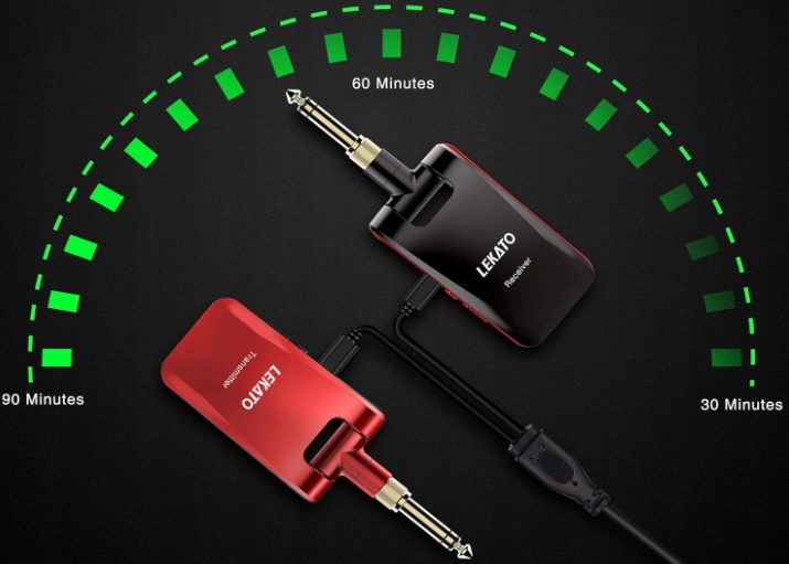 Беспроводной гитарный передатчик LEKATO Stereo 2,4 ГГц со штекерами 1/4" 1/8"