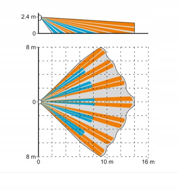- зона обнаружения: 15 м х 24 м, угол 90°