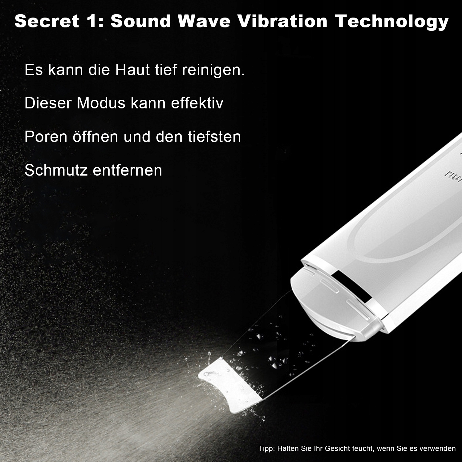 Использует технологию высокочастотной вибрации и адсорбцию отрицательных ионов для глубокого очищения кожи.