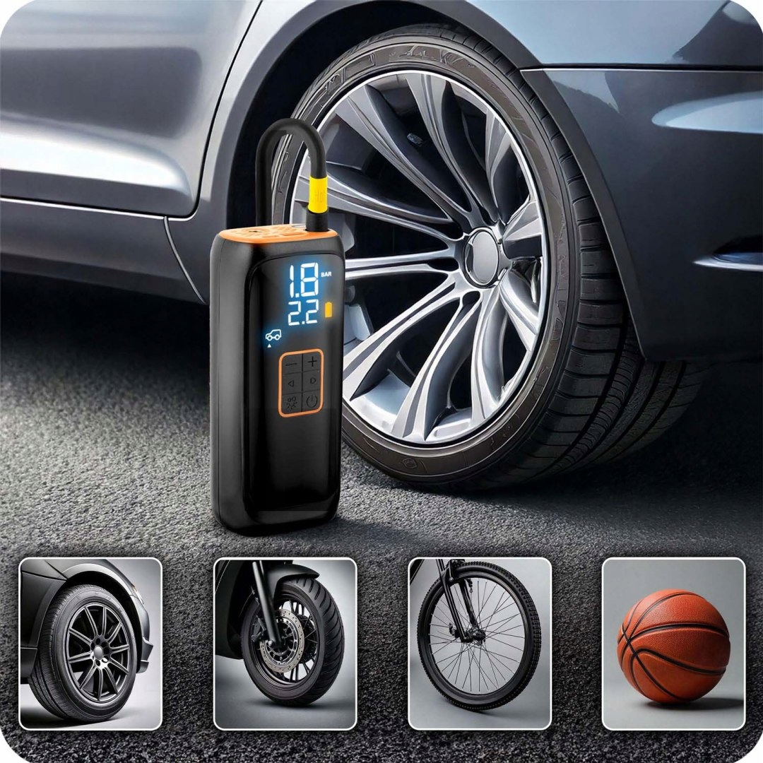 Накачает ли он автомобильные шины до рекомендуемого давления? ➡️ Да. Максимальное давление устройства составляет 10,3 бар, а автоматическое отключение прекратит подачу при достижении заданного значения.