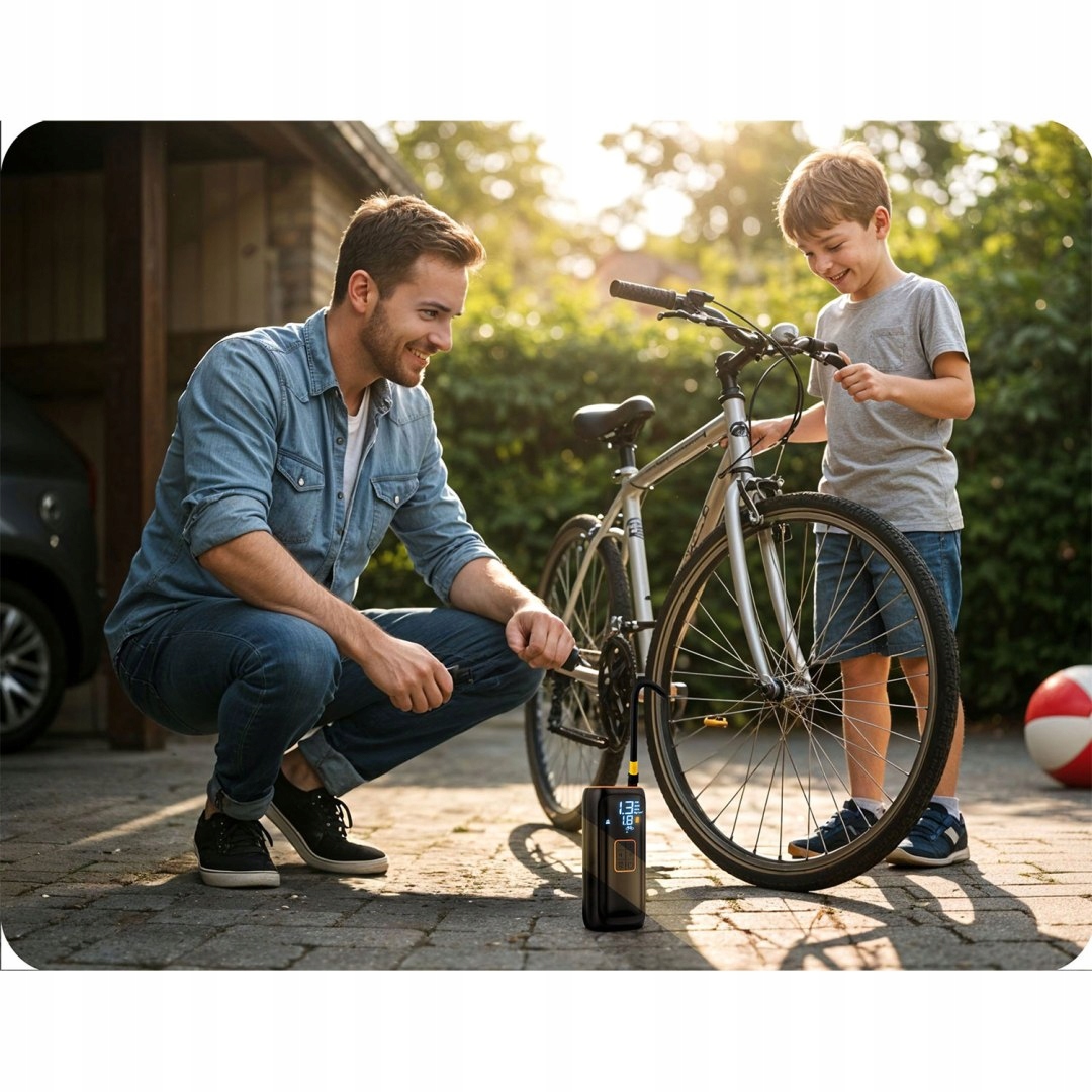➡️ В комплект входит все необходимое: воздушный шланг, шариковая игла, насадка Presta (велосипеды), кабель USB-C и практичный чехол. Встроенное отделение для хранения шлангов помогает поддерживать порядок, а небольшой вес упаковки – ок. 0,6 кг — означает, что компрессор легко поместится в бардачок автомобиля, сумку или рюкзак.
