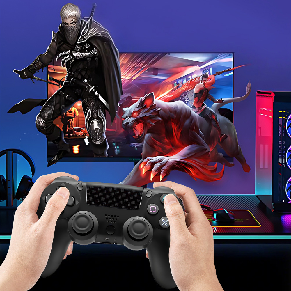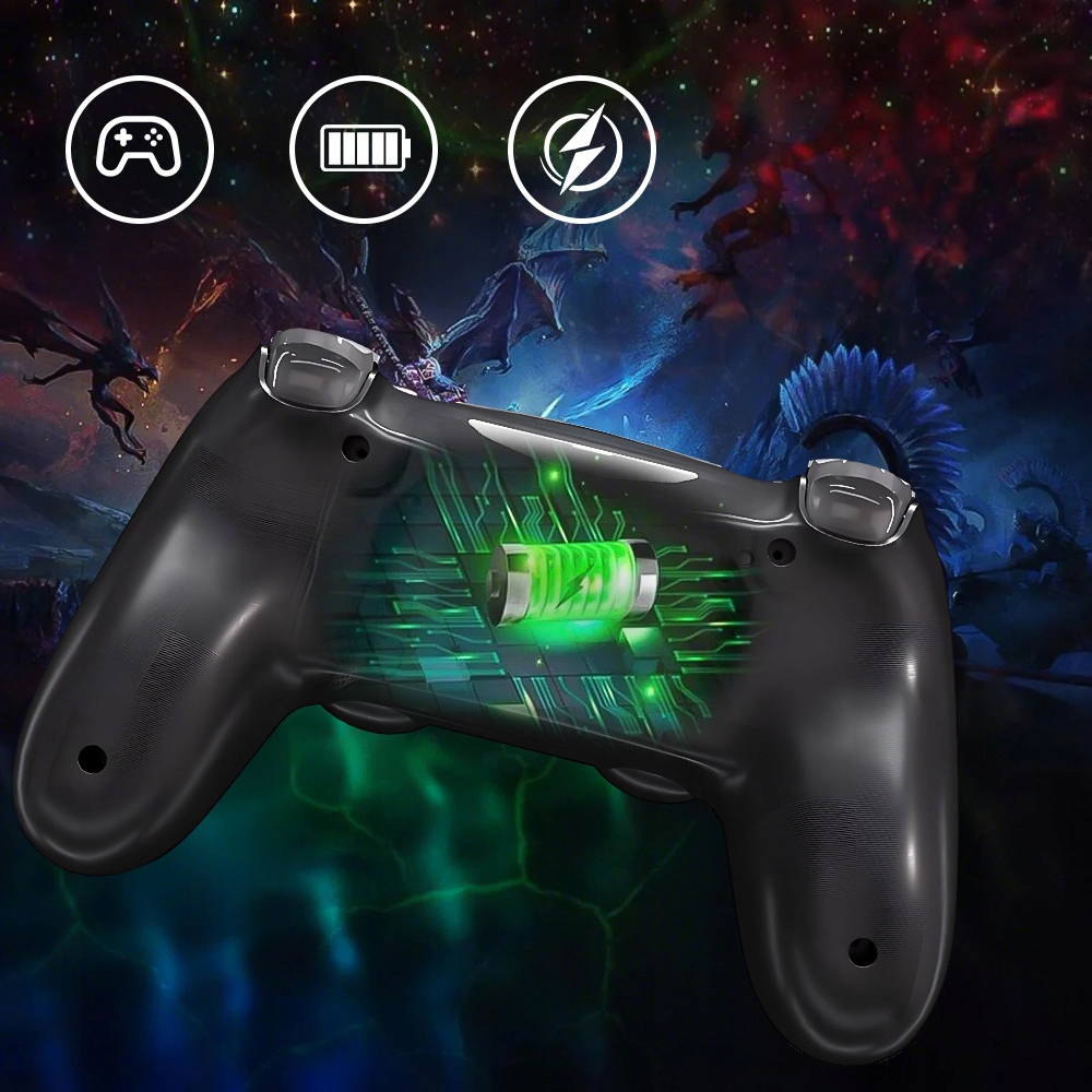 Контроллер, включающий беспроводной контроль консоли PlayStation 4. Это альтернативное предложение схожих функций и удобство использования. Замена имеет встроенную батарею, которая может быть заряжена USB -кабелем, и множество кнопок, включая аналоговые джойстики, кнопки действий, сенсорную панель и динамик.