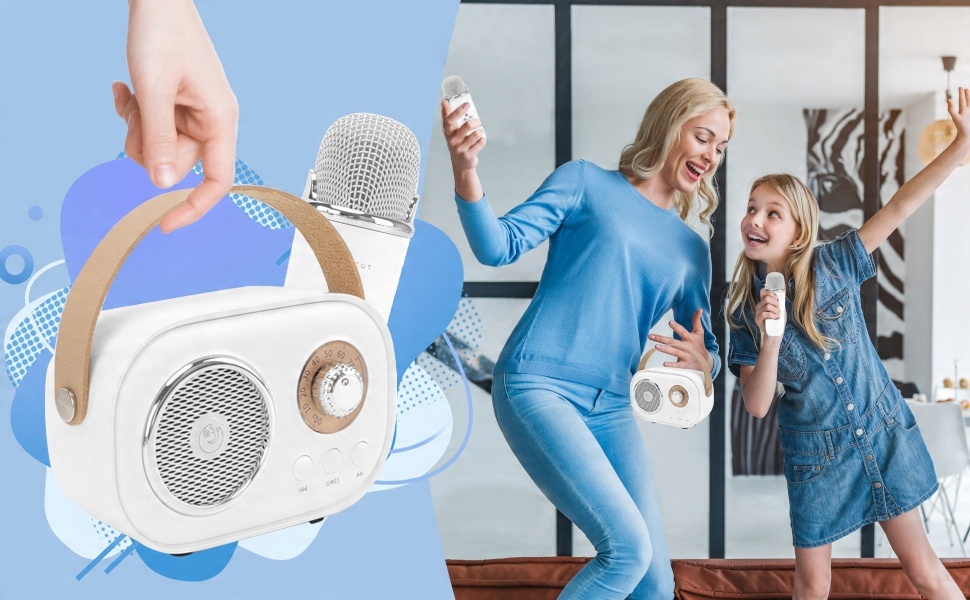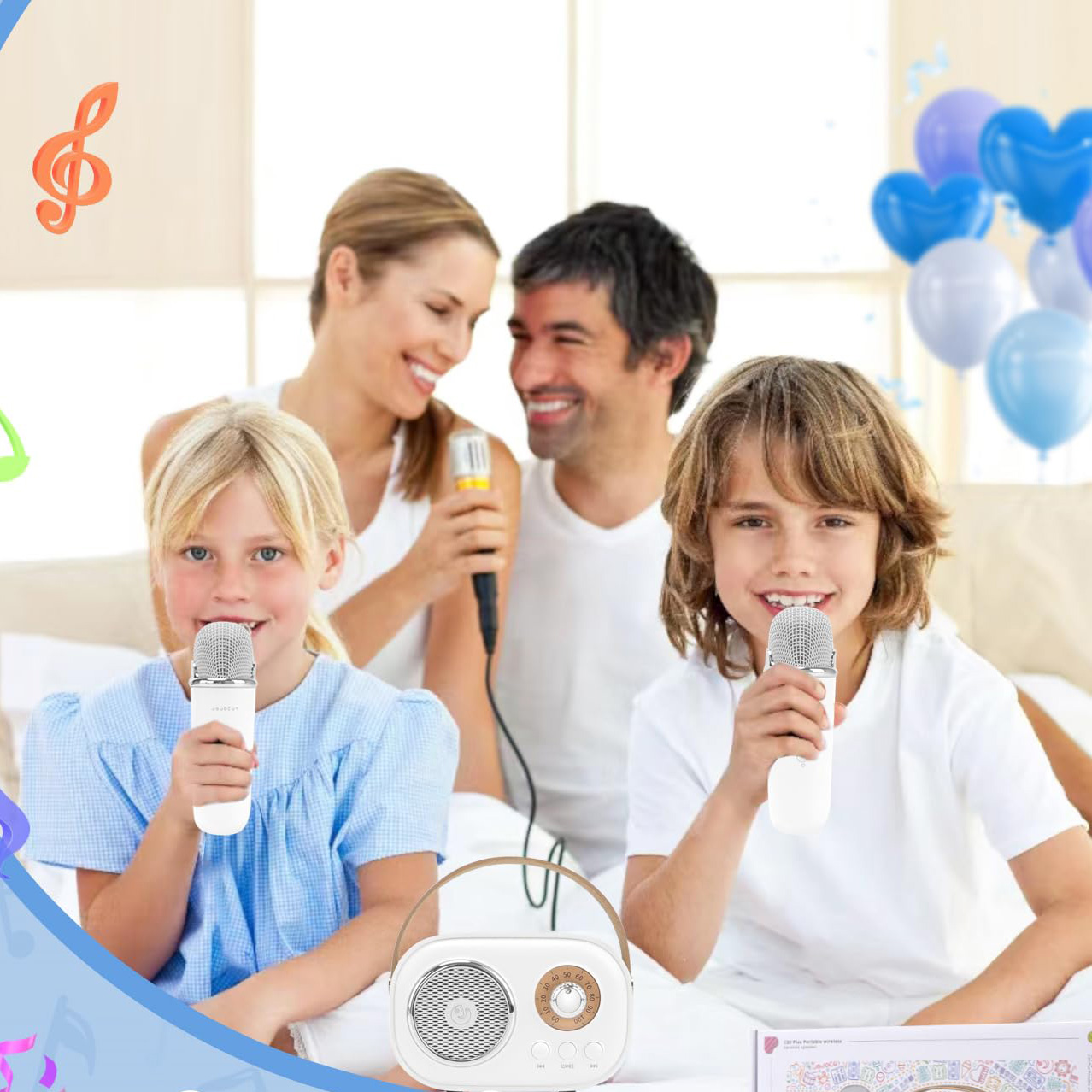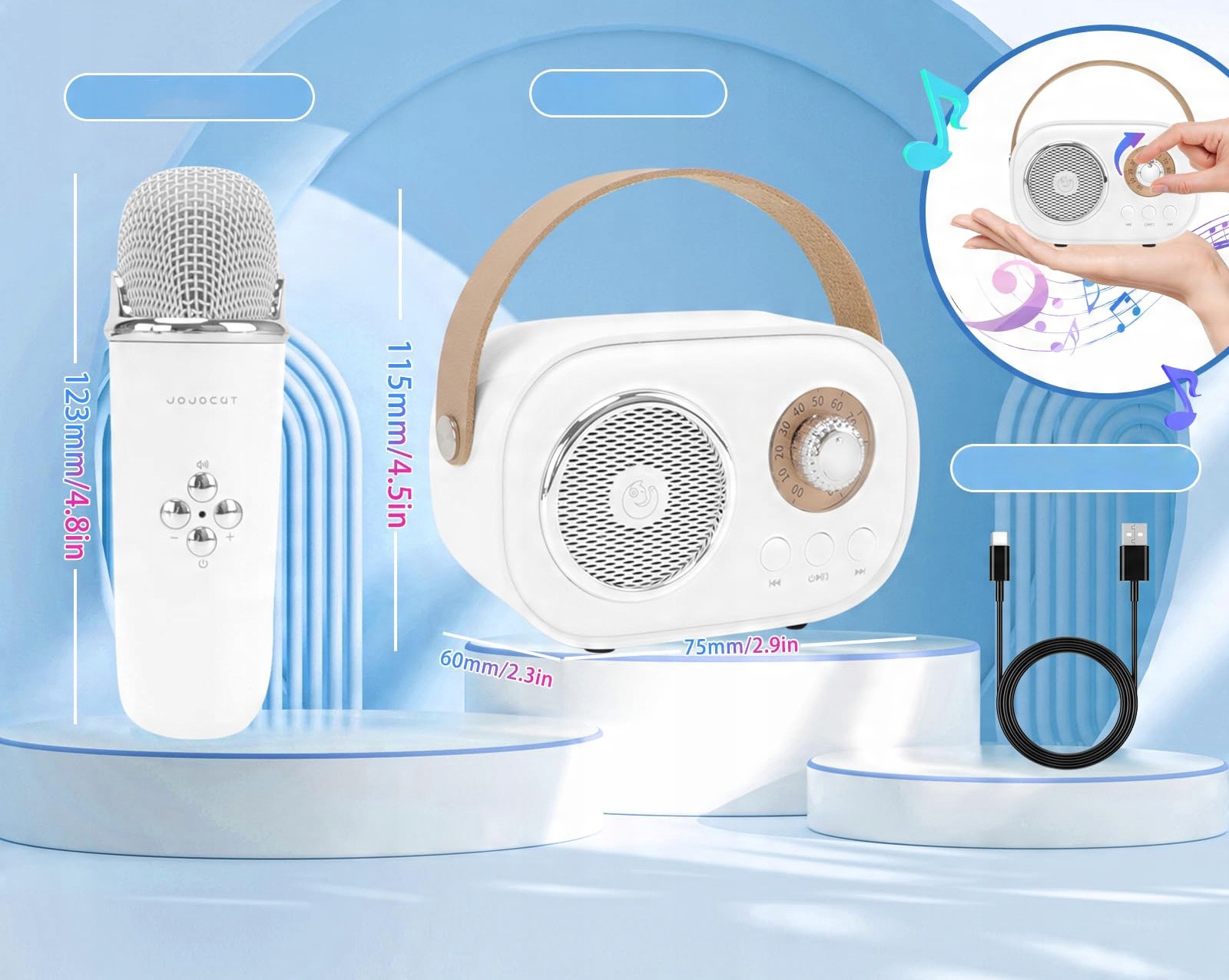 ✅Симпатичная караоке-машина в классическом стиле ретро: Динамик с микрофоном, небольшая караоке-машина в стиле ретро, приятный дизайн, сочетает в себе ретро-элегантность и приятный внешний вид с ретро-украшениями, перенося вас в 1960-е годы и ностальгические воспоминания о прошлое.