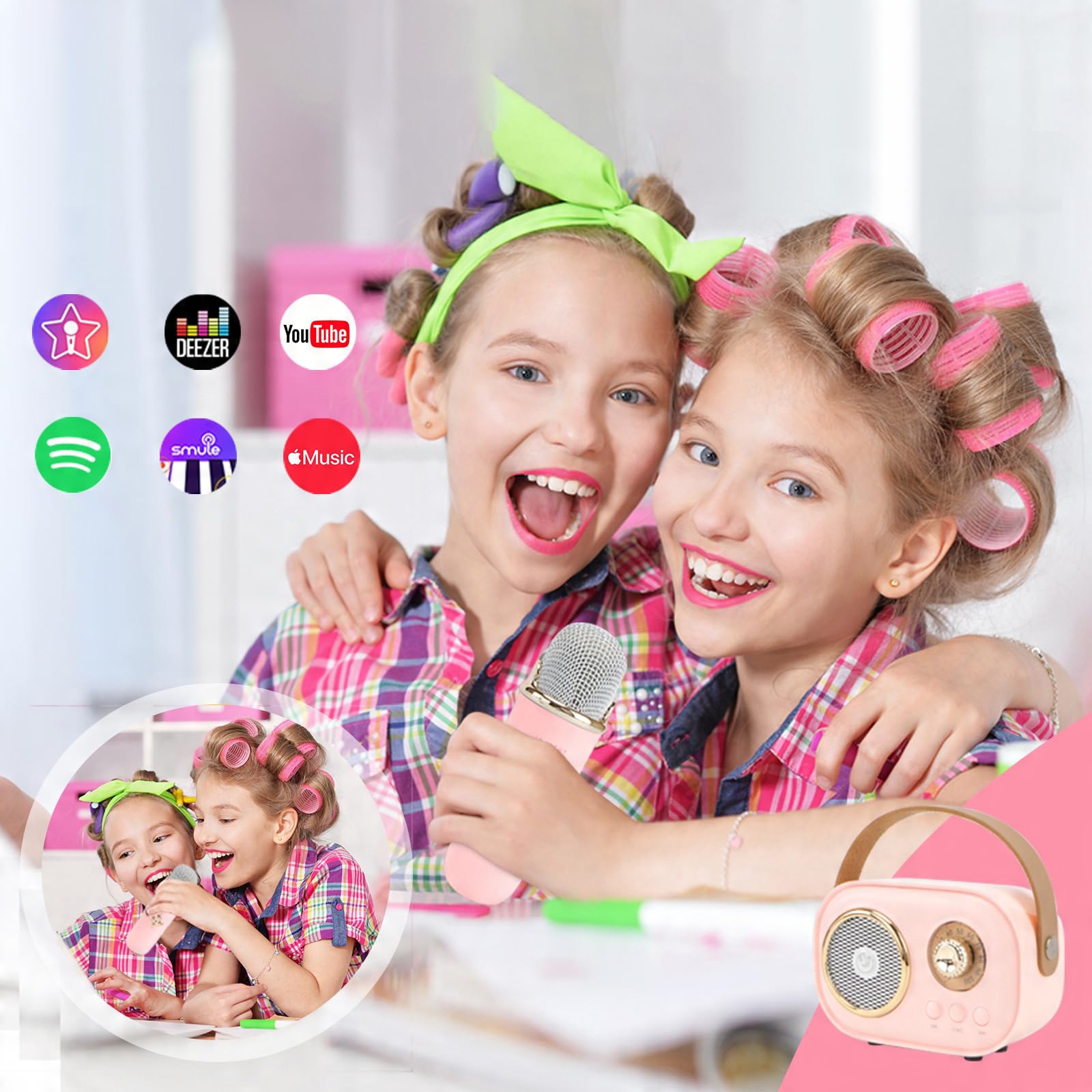 ✅Симпатичная караоке-машина в классическом стиле ретро: Динамик с микрофоном, небольшая караоке-машина в стиле ретро, приятный дизайн, сочетает в себе ретро-элегантность и приятный внешний вид с ретро-украшениями, перенося вас в 1960-е годы и ностальгические воспоминания о прошлое.