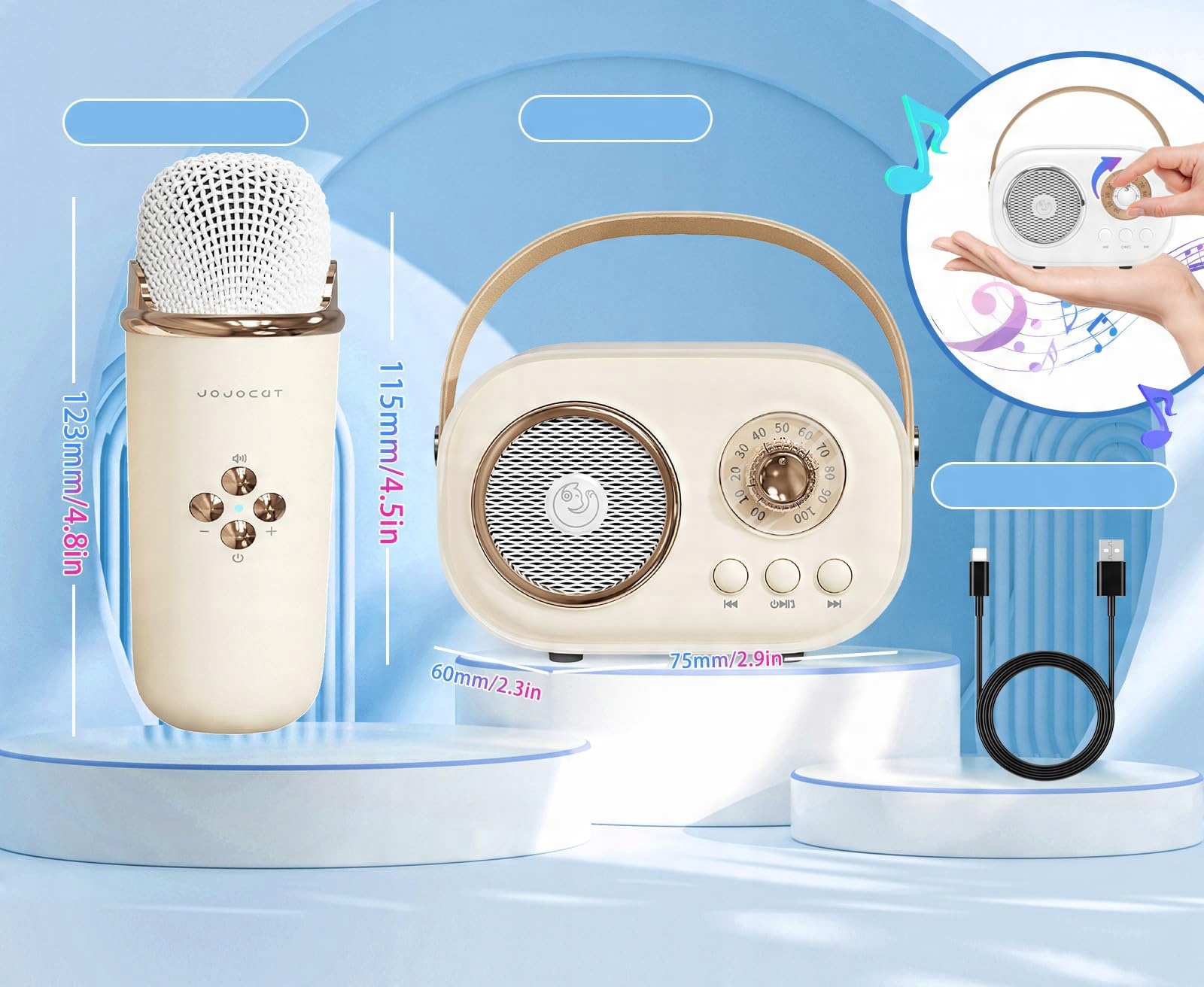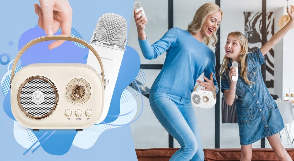 ✅Симпатичная караоке-машина в классическом стиле ретро: Динамик с микрофоном, небольшая караоке-машина в стиле ретро, приятный дизайн, сочетает в себе ретро-элегантность и приятный внешний вид с ретро-украшениями, перенося вас в 1960-е годы и ностальгические воспоминания о прошлое.