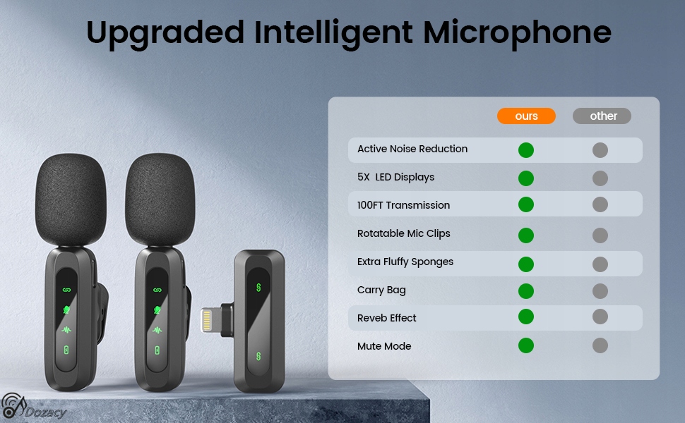 - Получите нужные вам звуковые эффекты с помощью функций шумоподавления, отключения звука и реверберации беспроводного петличного микрофона. li>