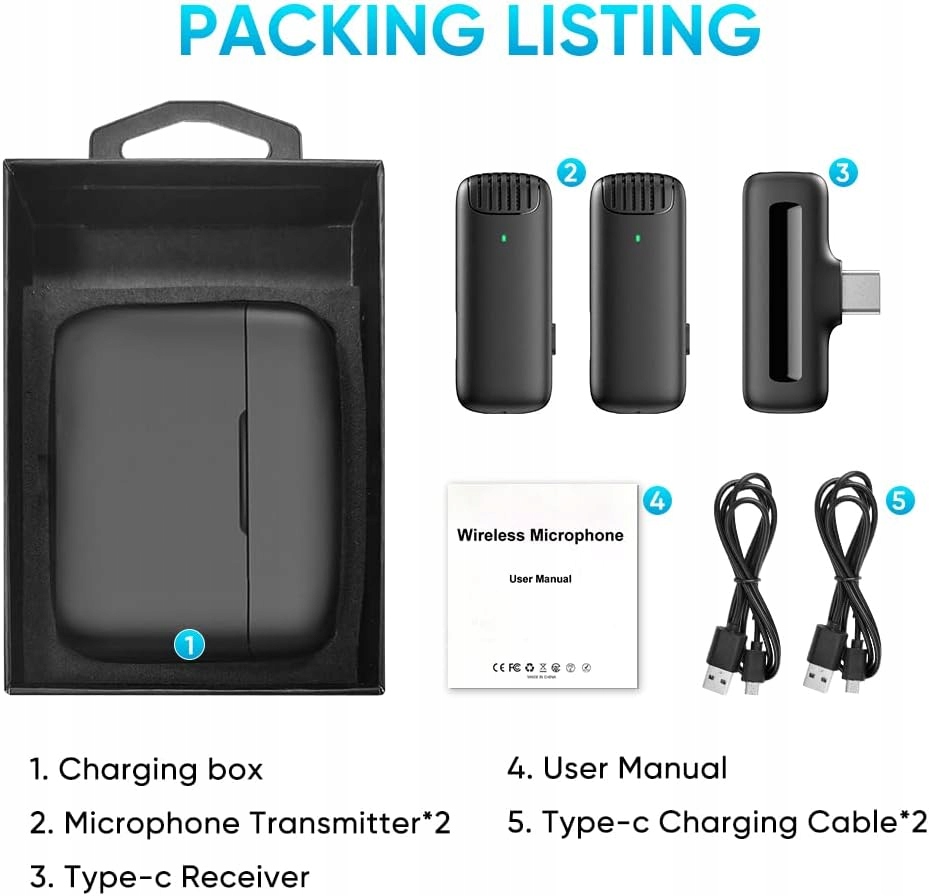 - Надежный чехол для зарядки и радиус действия звука 10 м. Встроенные аккумуляторные батареи, футляр для хранения также предназначен для зарядки микрофона. После полной зарядки бокса микрофон можно полностью заряжать до 4-5 раз, а после зарядки микрофон может работать около 4-6 часов. Легко хранить, легкий и портативный, весит всего 126 г.