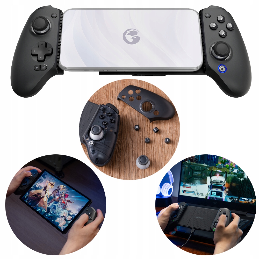благодаря расширяемому мосту контроллер совместим с телефонами с длиной от 110 до 215 мм. G8+ также совместим с консоли переключателя и таблеток . Благодаря заменяемым магнитным панелям, стержням и кнопкам игроки могут адаптировать контроллер к своему уникальному стилю игры