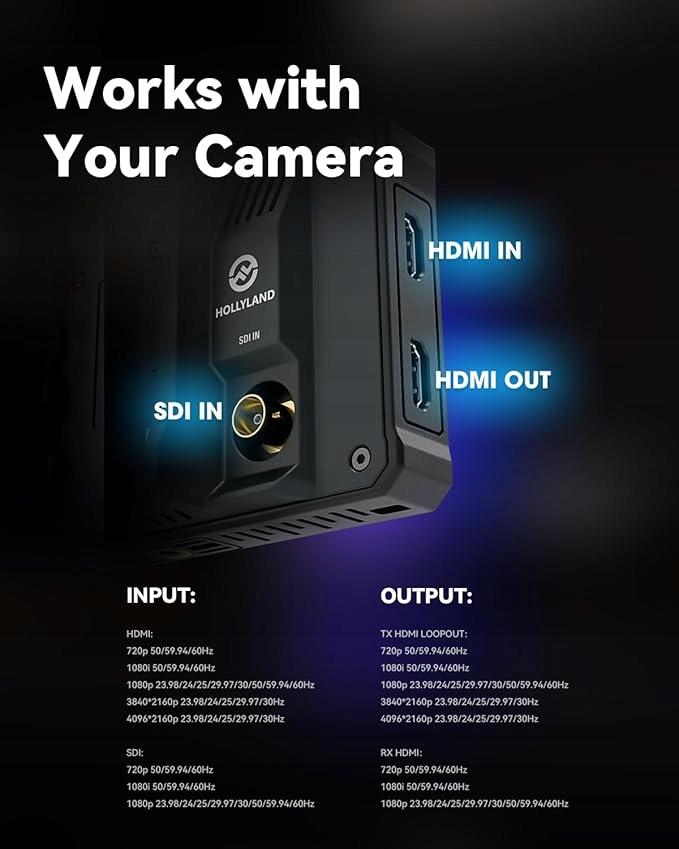 беспроводной передатчик видео Mars M1 поддерживает видео форматы до 4K/ 30 FPS, вход HDMI и цикл, который обеспечивает расширенное соединение и совместимость. Вход SDI обеспечивает гибкость скорости рамы как для стандартов передачи, так и для производства. /s через HDMI In & Loopout, но не отправляет сигнал 4K/30 FP/S по беспроводной связи)