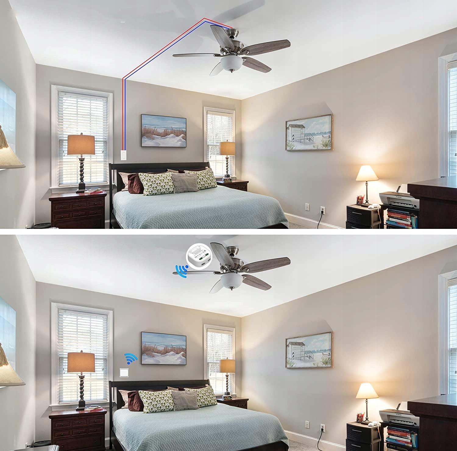 ● Настенный переключатель и пульт дистанционного управления в одном: просто прикрепите или прикрутите беспроводной переключатель к стене или дверной коробке (двусторонняя клейкая лента входит в комплект). Вы также можете удобно управлять освещением со своего стола.