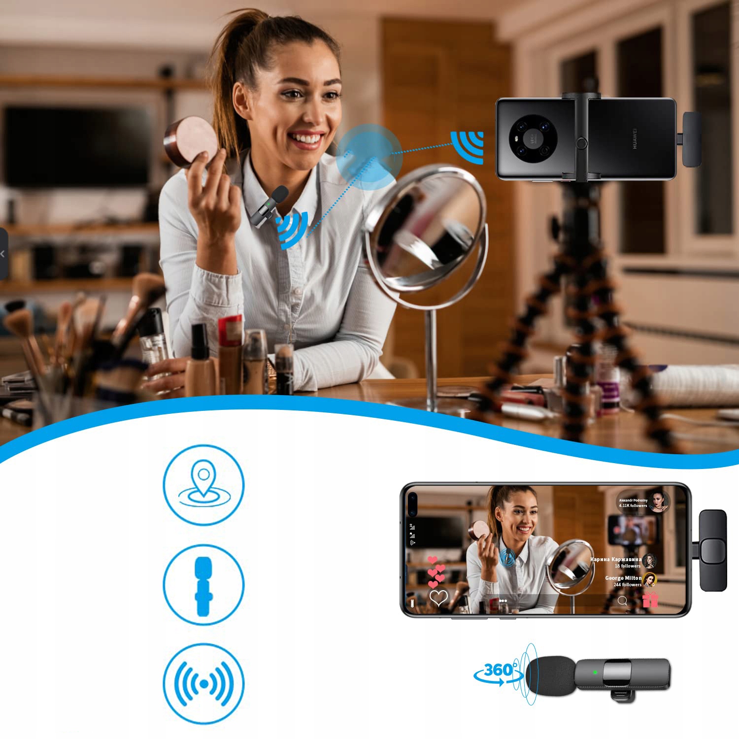 ⭐【Мини-портативный и прочный】: небольшой, компактный размер, который можно легко прикрепить к рубашке. галстук или сумка. Предназначен для прямых трансляций на YouTube/Facebook, TikTok, видеоблогеров, блоггеров, ютуберов, интервьюеров и других любителей видеозаписи. Идеально подходит для кинематографистов, видеоблогеров, мобильных журналистов, создателей контента, преподавателей и т. д.