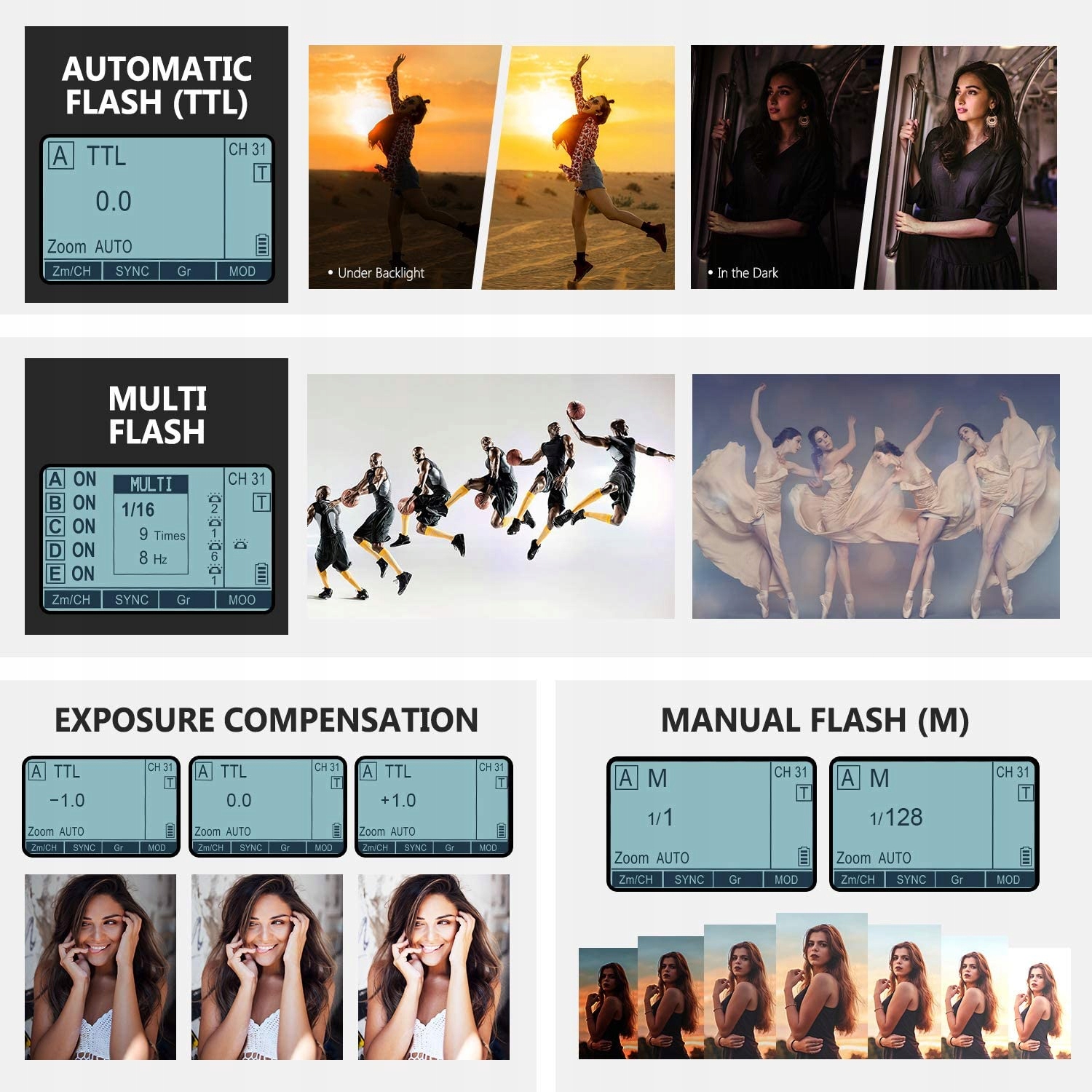 - Функции TTL и Pro: совместимы с Nikon D850/D810/D800/D750/D700/D7500/D7200/D7100/D5500/D5300/D5200/D5100/D5000/D35000/D340000000000/D3400/D 3400 /D3400 / D34000/D34000 D34000/D35000/ Камеры /D3200/D3100/D610/D600/D500/D300S/D90/D80; Совместимость с TTL, HSS 1/8000 с, мульти, ручная вспышка, компенсация экспозиции вспышки, функция масштабирования, управление групповой моделирующей лампой, групповой зум, одновременная регулировка выходного значения всех групп Bear.