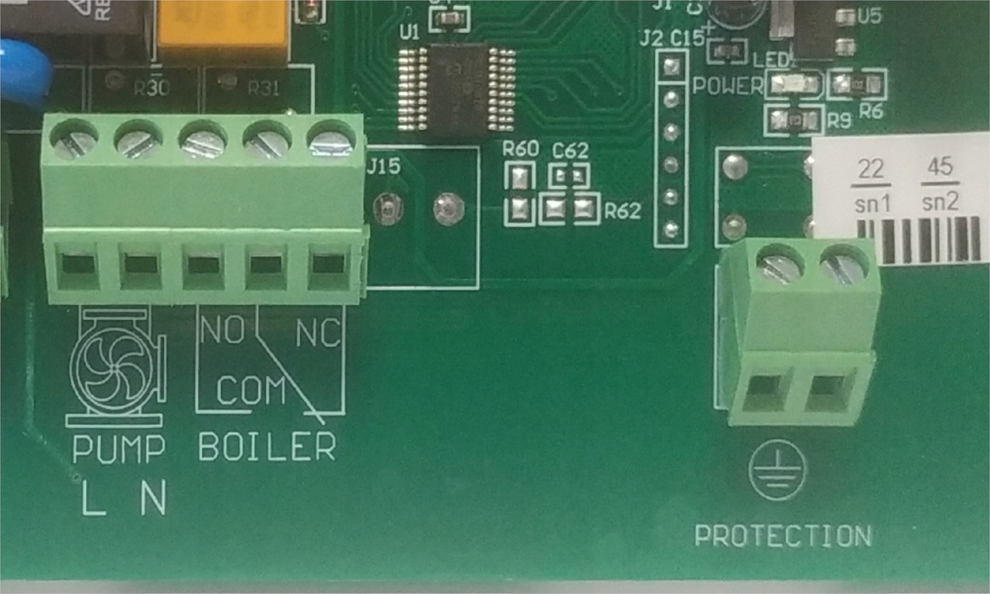 В контроллере имеется функция работы циркуляционного насоса, обеспечивающая циркуляцию горячей воды в системе отопления. Подключите кабели насоса к соответствующим клеммам, в соответствии с маркировкой на контроллере.