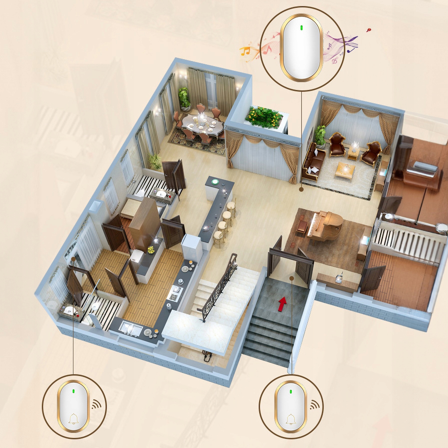 Максимальный радиус действия беспроводного дверного звонка составляет до 150 м, поэтому пользователь будет его можно легко установить как дома, так и в жилых помещениях, а также в квартире или даже в гараже. Дверной звонок чрезвычайно прост в установке.