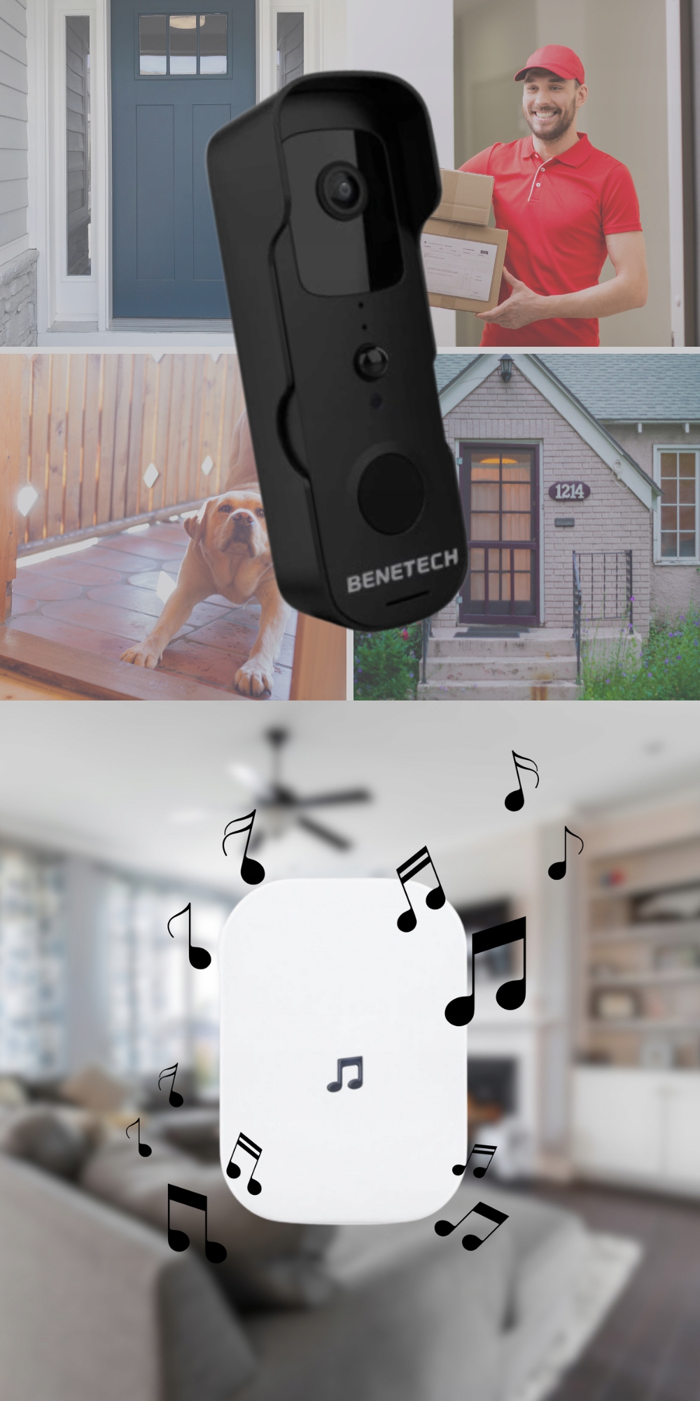 Видеодомофон Benetech PD‑110 представляет собой беспроводноеустройство Tuya Smart, обеспечивающее входной мониторинг Full HD (1920×1080 пикселей) с углом обзора до 150°. Встроенная функция обнаружения движения и распознавания людей позволяет немедленно отправлять уведомления и записывать записи при обнаружении подозрительной активности. Кроме того, видеодомофон поддерживает карты microSD до 64 ГБ, работает в ночном режиме (ИК) и имеет уровень защиты IP53.