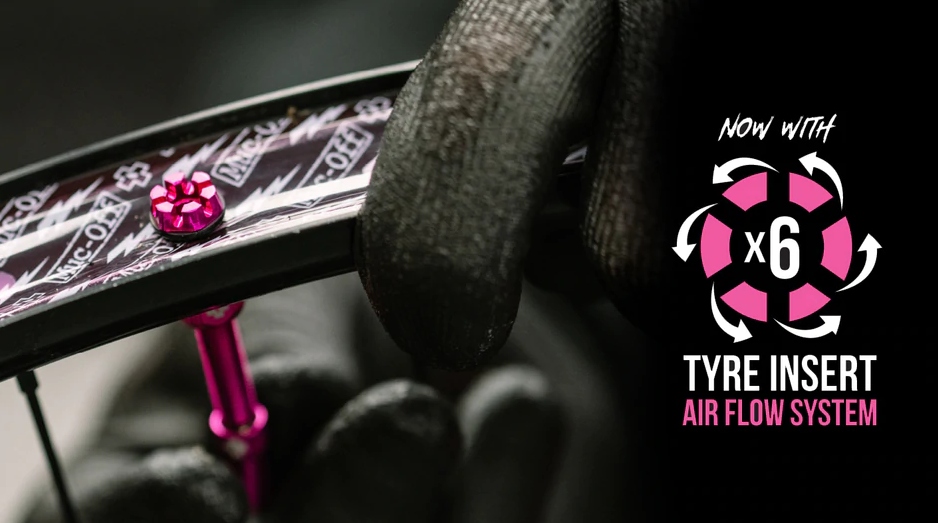 - Бескамерные клапаны Muc-Off V2 с новой системой подачи воздуха в шины. Имеет 6 прорезей, вырезанных в основании стержня клапана, что делает их совместимыми с большинством вставок для бескамерных шин и позволяет жидкости и воздуху из герметика свободно течь при работе со вставками для бескамерных шин.