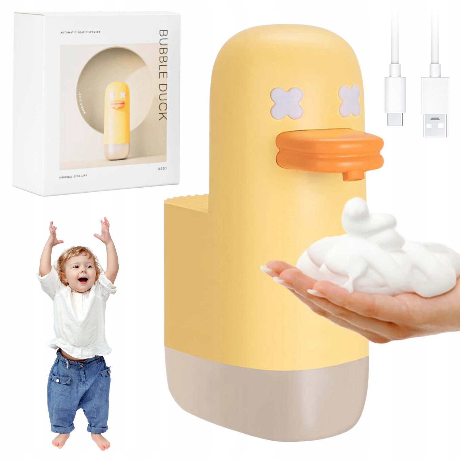 - Автоматический дозатор мыла для детей, маленькая желтая мультяшная уточка, красивый внешний вид, легко развлечься мытьем рук, благодаря чему у детей вырабатывается хорошая привычка часто мыть руки.