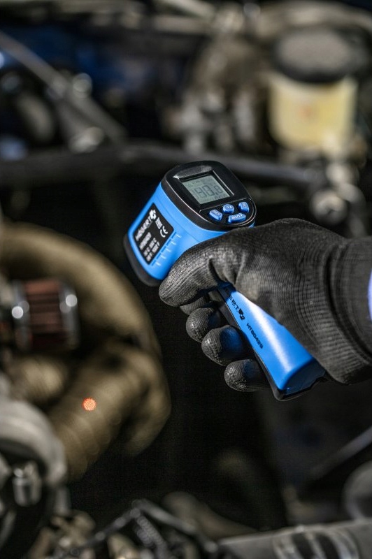 Цифровой термометр, предназначенный для не -контактного измерения, измеряя температуру объектов, расположенных за пределами диапазона, на значительном расстоянии, опасно для прикосновения, трудности для доступа или в движении . Используется в основном на профессиональных автомобильных семинарах и веб -сайтах, в промышленности, строительной отрасли или гастрономии.