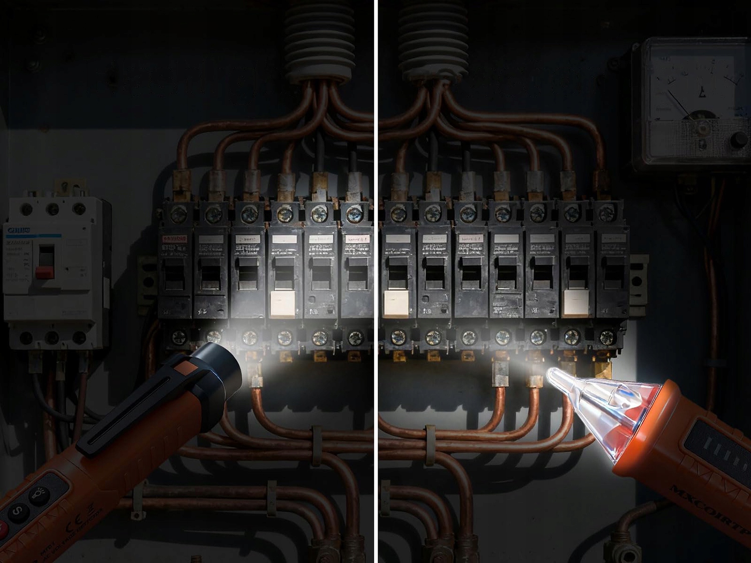 【Многофункциональный, простой в использовании】 ✅Он также работает как аварийный фонарик для освещения рабочего места. Бесконтактный тестер напряжения можно использовать в автоматических выключателях, осветительных приборах, выключателях, розетках, проводах и везде, где вам это нужно.