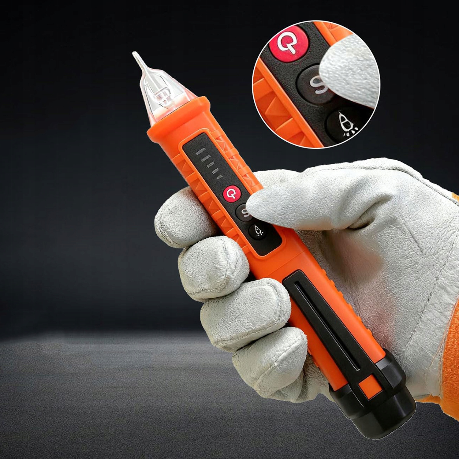 Тестер напряжения, бесконтактный детектор напряжения, электрический тестер, 3 диапазона переменного тока 12 В/48 В/70–1000 В, тестер фазного/нейтрального провода со звуковой сигнализацией и фонариком, определитель точки обрыва провода - оранжевый