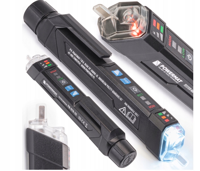 Прибор работает без необходимости контакта с проверяемыми объектами. Если переменное напряжение обнаружено в пределах обнаруженного диапазона, на устройстве загорается красный светодиод и раздаются короткие звуковые сигналы. Устройство оснащено встроенным фонариком, облегчающим работу в темных местах. Продукт предназначен только для использования внутри помещений.