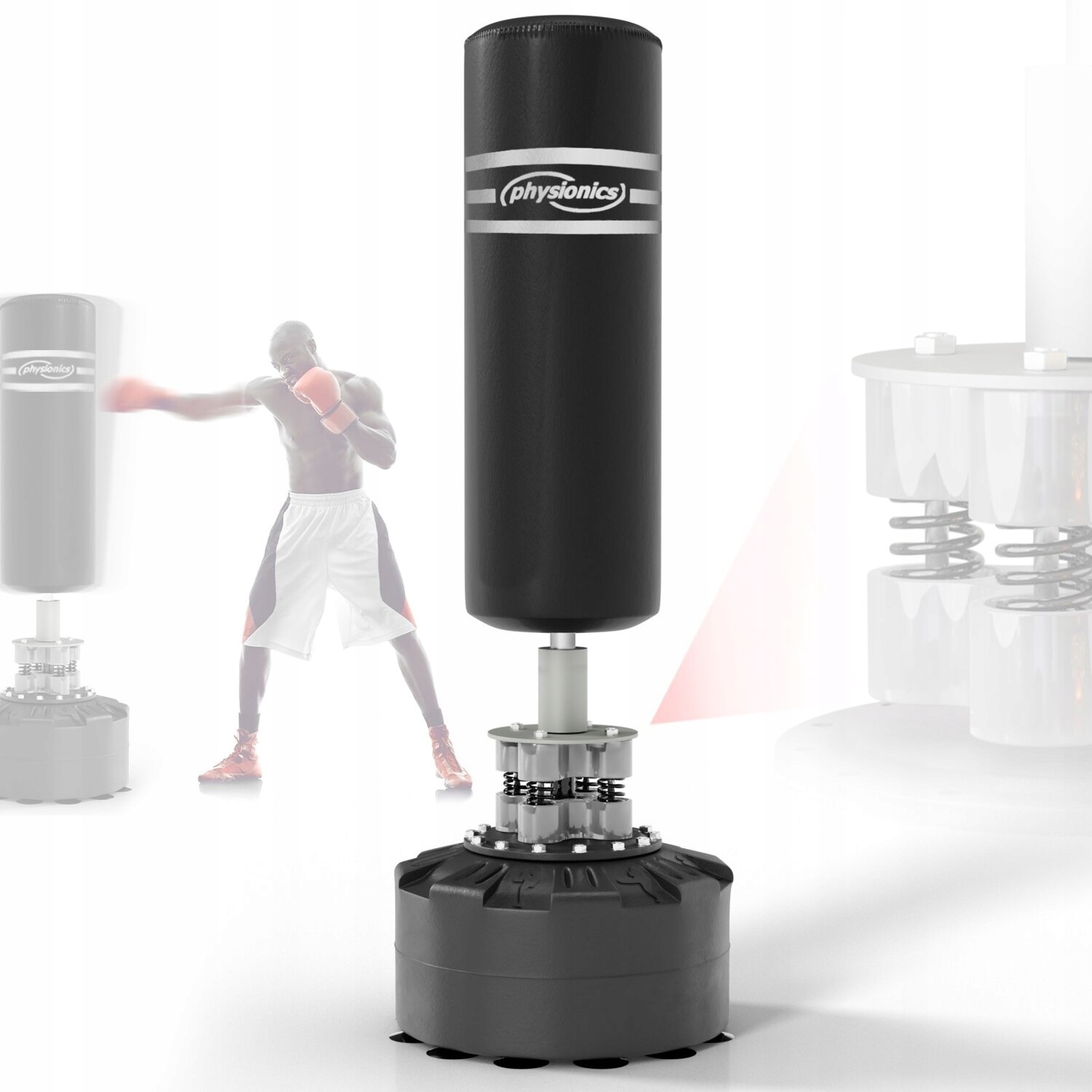 Высокая стабильность: боксерский партнер имеет сильное всасывание База (усиленная 12 всасывающими чашками) с искусственной кожей и наполненной пеной/ткани/полиуретановыми полосами