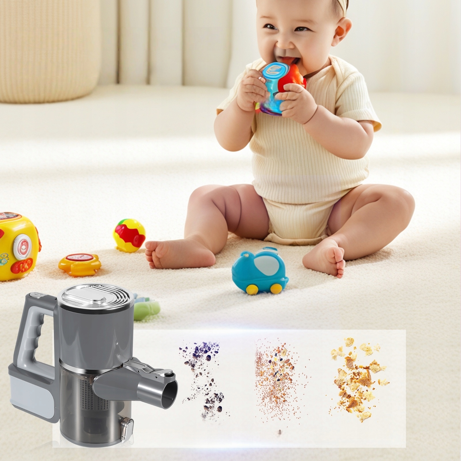 Многозадачность: Эффективно удаляет мелкую пыль, овсяные хлопья, крошки печенья и другие частицы различных размеров. Особенно подходит для домов, где есть дети или домашние животные, поскольку позволяет легко поддерживать гигиену пола.