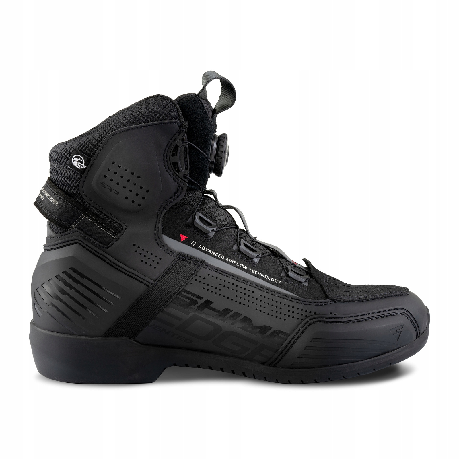 Вашу безопасность также обеспечивают полипропиленовая вставка, поперечно придающая жесткость подошве, и защита лодыжки SAP™ из TPR, а области пятки, лодыжки и носка дополнительно усилены. Обувь EDGE VENTED оснащена ремешком, облегчающим надевание обуви, и инновационной системой шнуровки ATOP, которой можно легко управлять одной рукой, даже не снимая перчатки. Для еще большего комфорта модель EDGE VENTED имеет клин, облегчающий поиск правильного положения ноги на подножке, и усиление в районе площадки переключения передач. Светоотражающие элементы защитят вас даже в темноте.