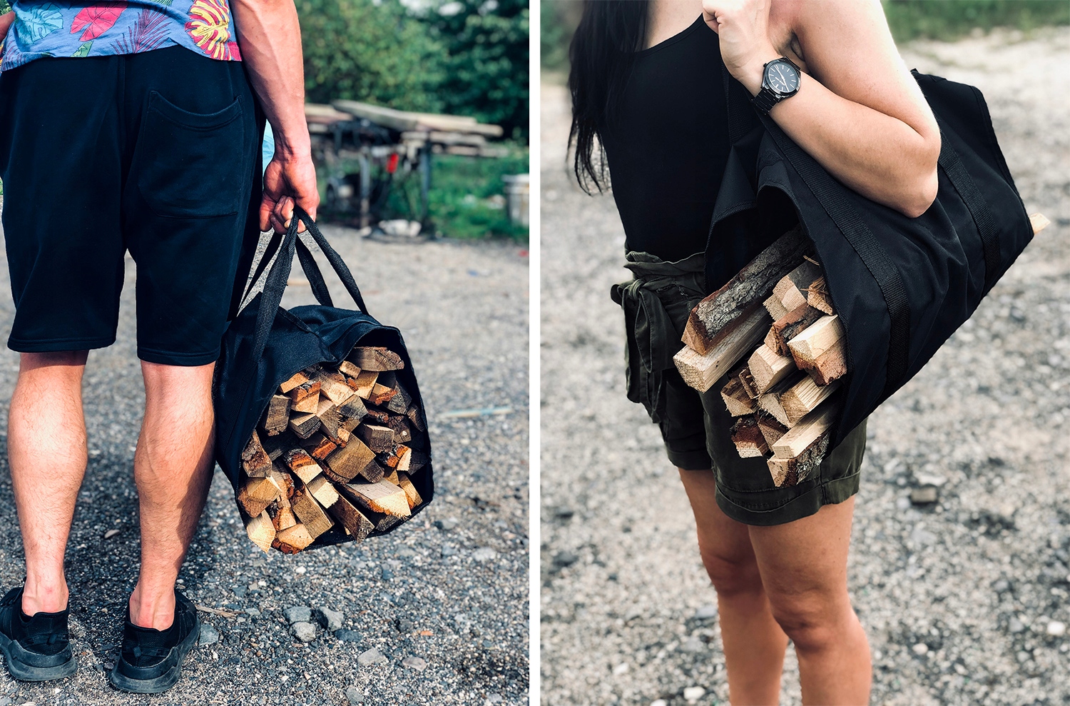 Сумка имеет открытую конструкцию, что позволяет перевозить большое количество древесины любого размера. Состоит из двух ручек, что позволяет удобно транспортировать древесину. Их можно держать в руках или положить на плечи. Чтобы повысить устойчивость при переноске большого количества вещей, рюкзак можно закрепить с помощью липучки; дерево не сдвинется.