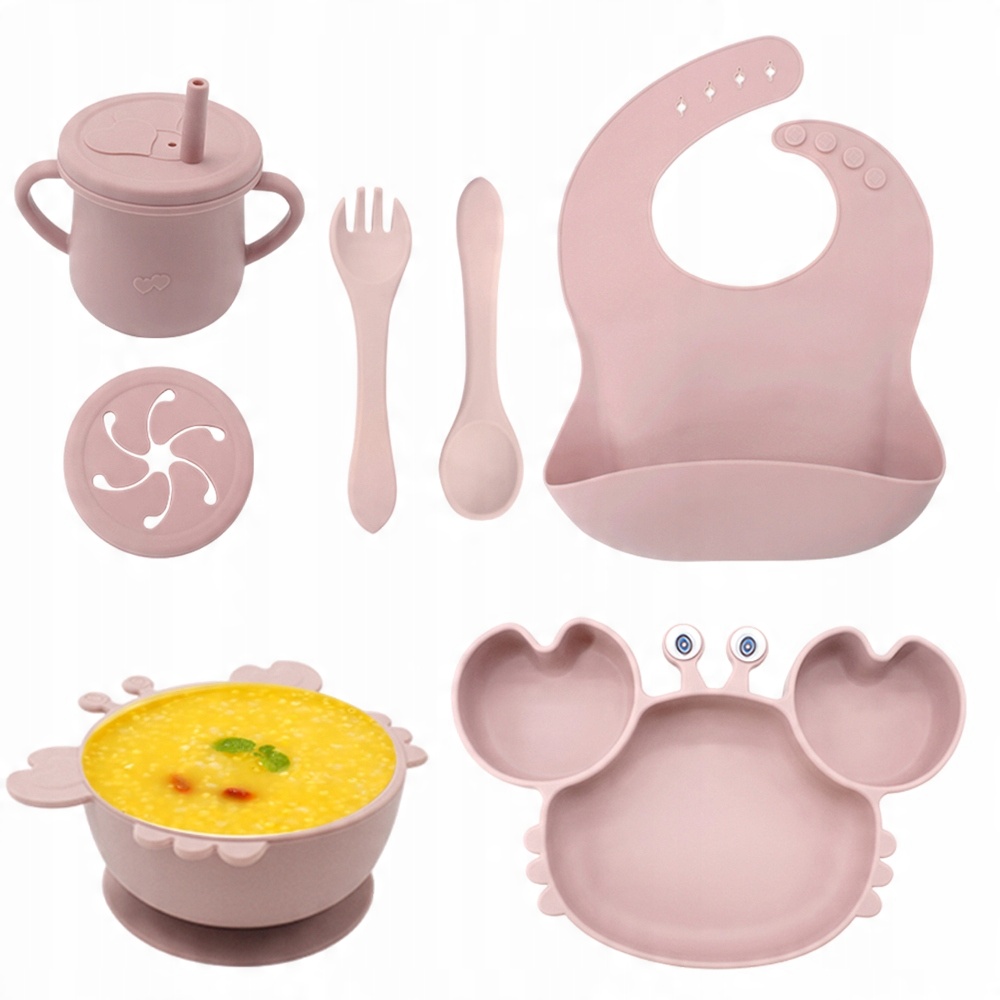 БЕЗПЕЧНИЙ НАБІР СИЛІКОНОВОГО ПОСУДУ ДЛЯ МАЛЮКІВ, 8 шт. РОЖЕВИЙ