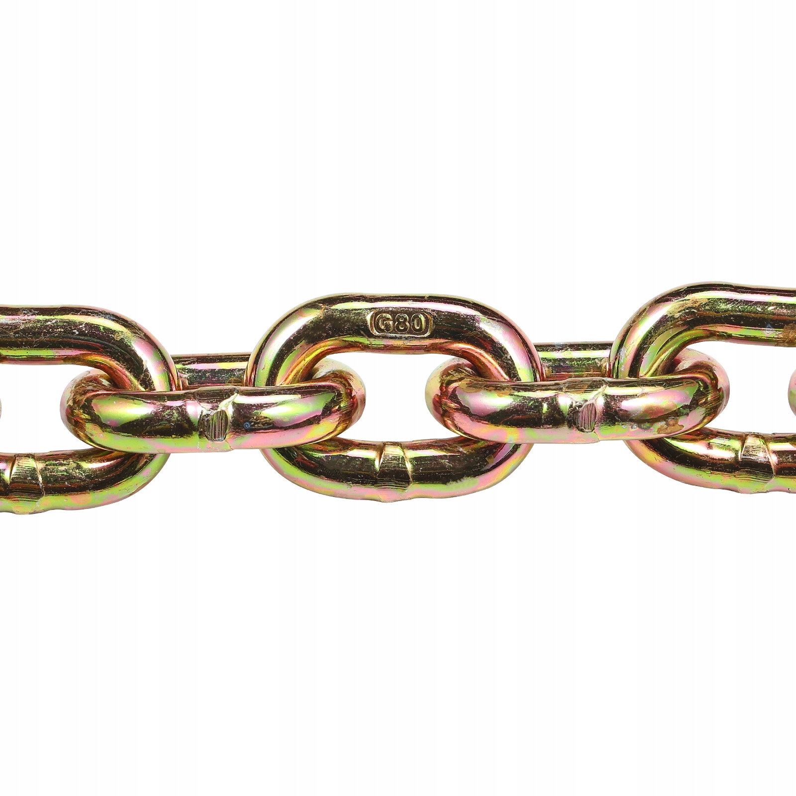 Прочность класса G80: эта цепь зажима класса G80 характеризуется впечатляющей прочностью растяжения! Он измеряет 433 см (14,2 фута) длины и 8 мм (5/16 дюймов) в диаметре, предлагая высокую прочность на разрыв.