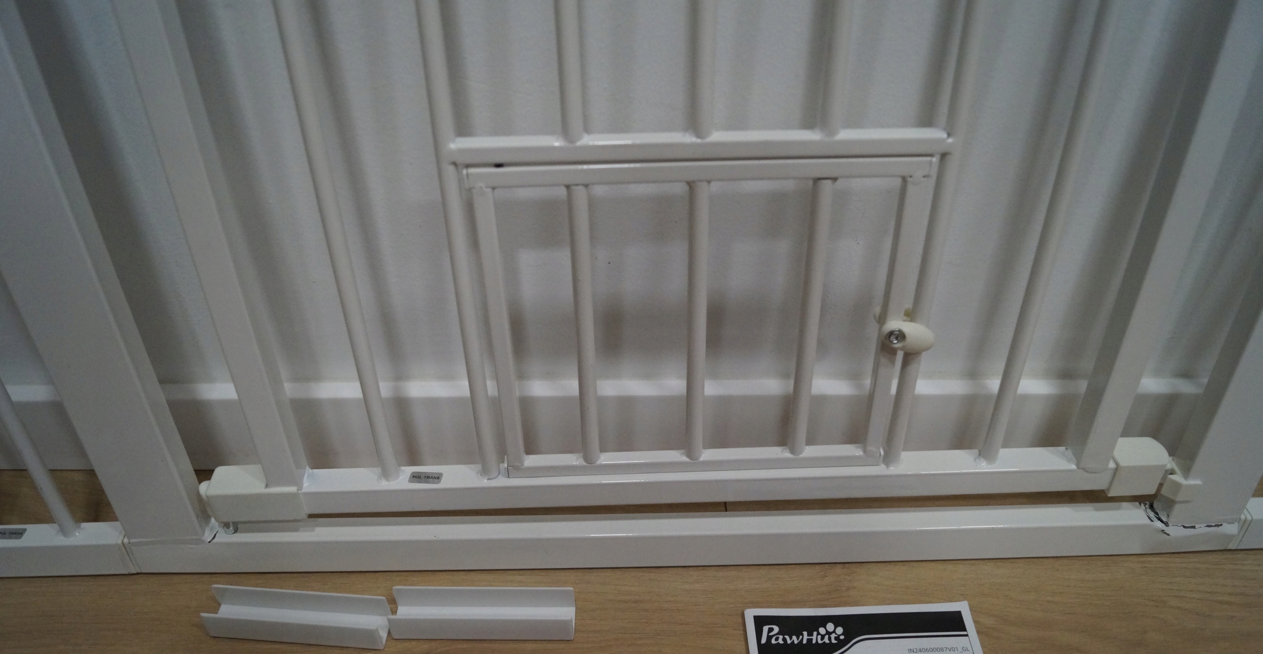 Откройте для себя лестницу Pawhut для собак, идеально подходящую для обеспечения безопасности четырех поднятых друзей. Высокая и широкая лестница может быть отрегулирована в диапазоне от 76 до 104 см и подходит для многих областей. Благодаря системе двойной блокировки и интегрированной двери для кошки, это без бурения лестничных ворот идеально подходит для домохозяйств со многими животными. Стильный и практичный - необходимо для каждого владельца животного. Поврежден во время Transport Co показана на реальных фотографиях