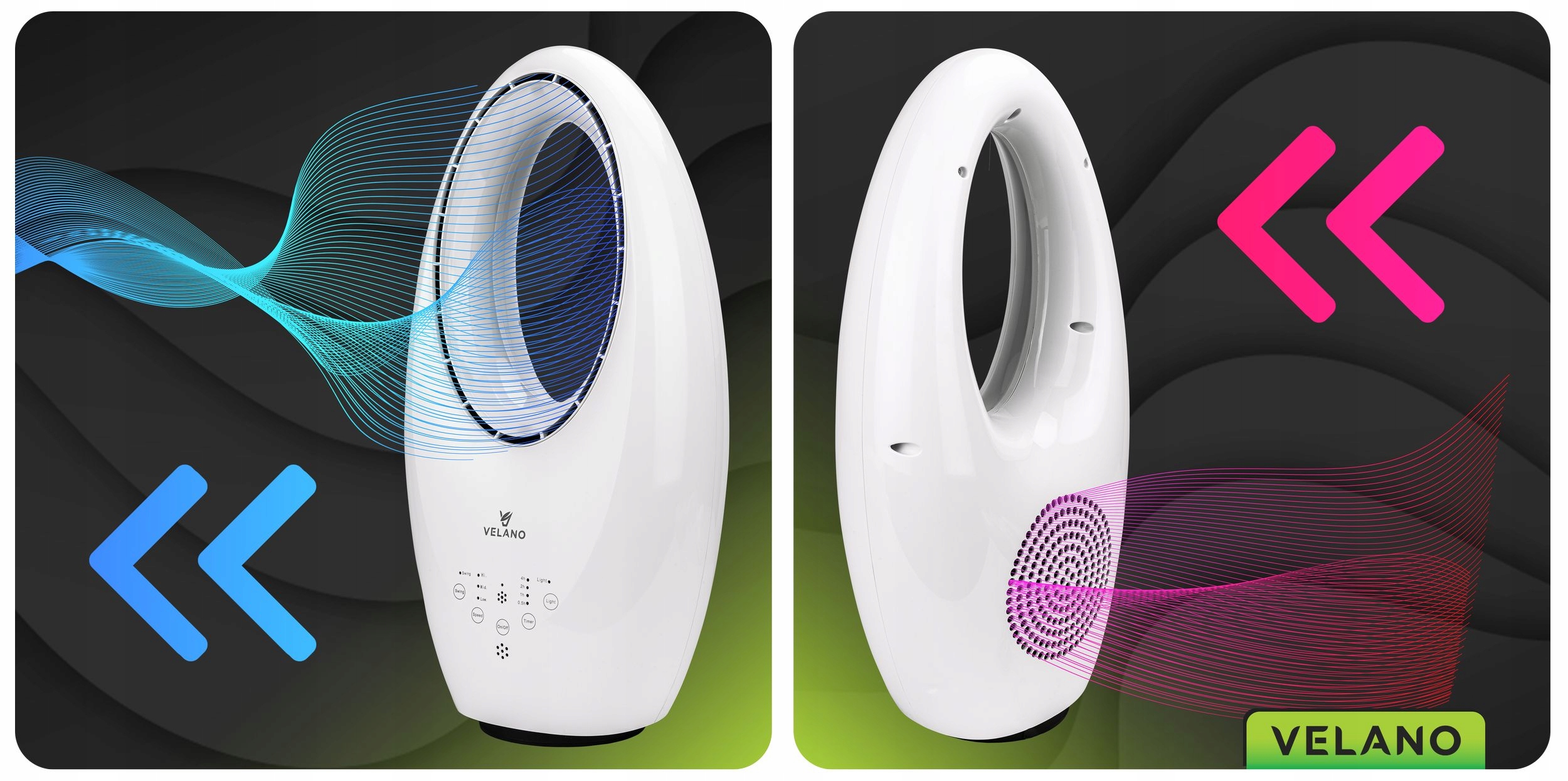 Velano без нестабильного вентилятора -это стильное и безопасное решение для жарких дней. Он предлагает тихую работу, три уровня скорости и колебания. Дистанционное управление, таймер и энергоэффективность обеспечивают комфорт использования, а элегантный дизайн со светодиодной подсветкой подходит для любого интерьера