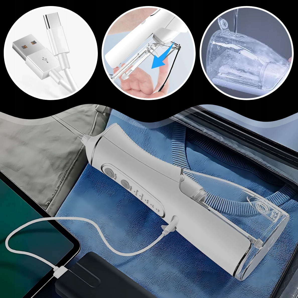 ➡️ ПОЛНАЯ МОБИЛЬНОСТЬ - легкий, компактный дизайн и питание от USB делают ирригатор идеальным не только дома, но и в путешествии. Он легко поместится в чемодан или сумку.