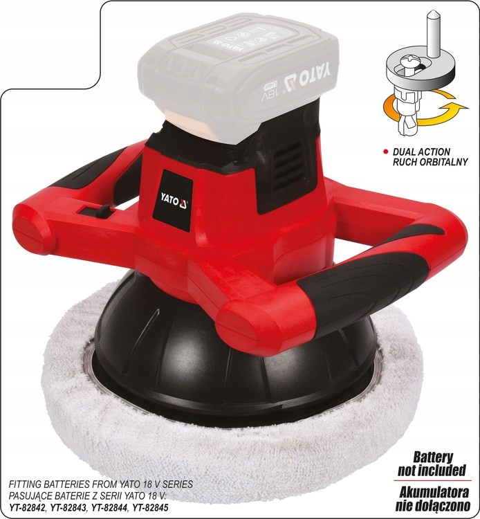 Орбитальная полировальная машина 18 В (двойного действия), предназначенная для полировки и нанесения воска на большие поверхности: капоты, крыши, крылья легковых автомобилей и фургонов, палубы лодок, полы и т. д.