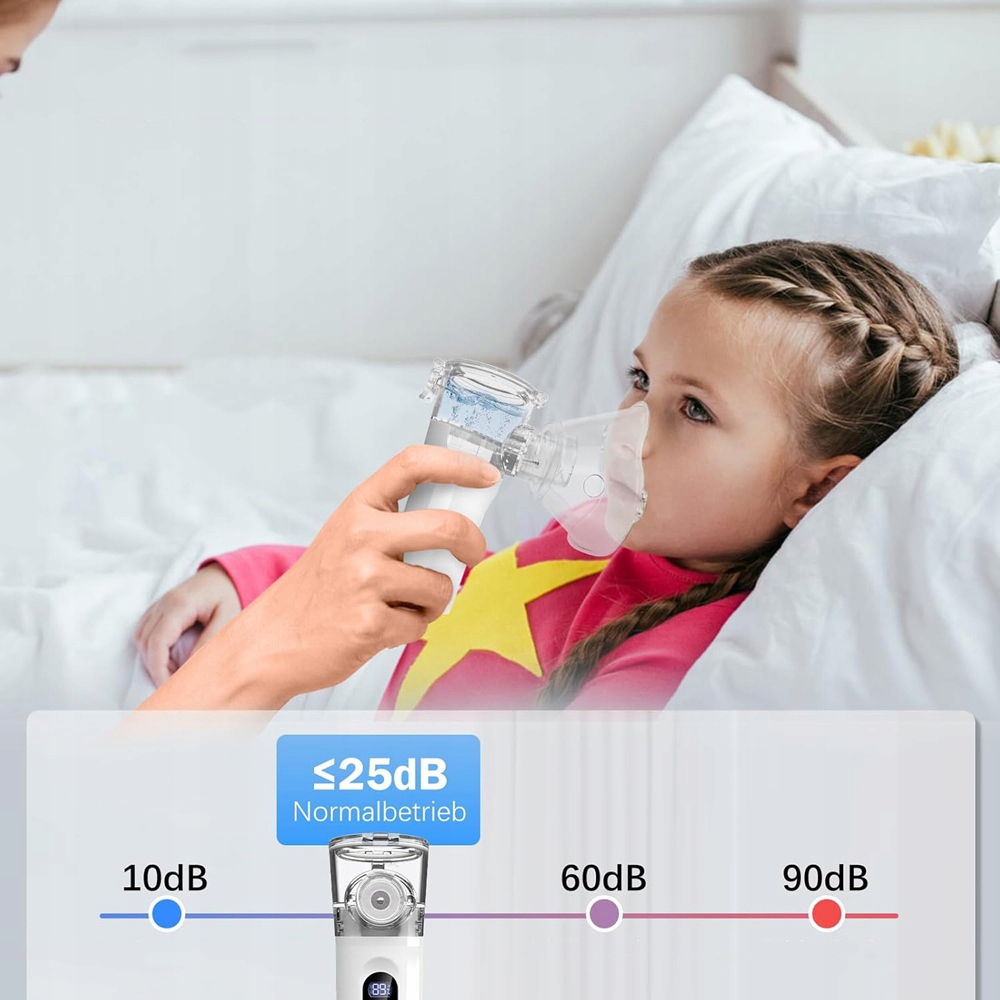 🍃 Небулайзер для всей семьи: Вы получаете 1 портативный ингалятор, 1 педиатрическую маску, 1 маску для взрослых, 1 мундштук, 1 коробку для хранения, 1 USB-кабель, 2 ремня маски и 1 руководство пользователя. И маски, и мундштук изготовлены из материала, разрешенного для контакта с пищевыми продуктами, что гарантирует безопасность и надежность. Наш небулайзер компактен и очень легок, поэтому его легко смогут держать в руках даже дети. Идеально подходит для использования в дороге — дома, в офисе или во время путешествия.