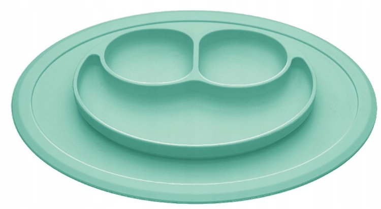 Силиконовая тарелка с отделениями и подставкой для детей из би-би, синего цвета. Тарелка имеет 3 отделения – 2 поменьше и 1 побольше, поэтому каждый вид продуктов можно разделить отдельно. Тарелка изготовлена из безопасного гипоаллергенного пищевого силикона, она мягкая и имеет высокие бортики, что позволит ребенку самостоятельно принимать пищу. Силиконовая подушечка прилипает к любому типу поверхности и не смещается во время еды.