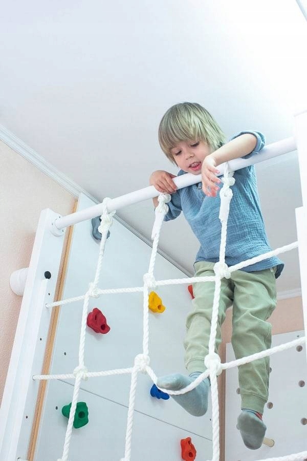 Деревянная гимнастическая лестница Marcel - это отличная комбинация различных гимнастических элементов: стена скалолазания, струнная сетка, колышка - все это означает, что набор упражнений заинтересует каждого члена семьи. Сделанная из натурального дерева, лестница для упражнений для упражнений, дополнит декор каждой комнаты.
