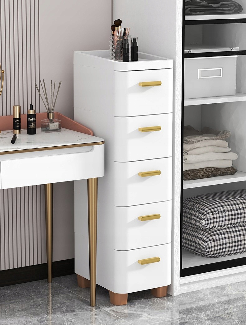 BIAŁA SZAFKA Z SZUFLADAMI ŁAZIENKOWA 5 SZUFLAD WYSOKA WĄSKA 25cm RG16